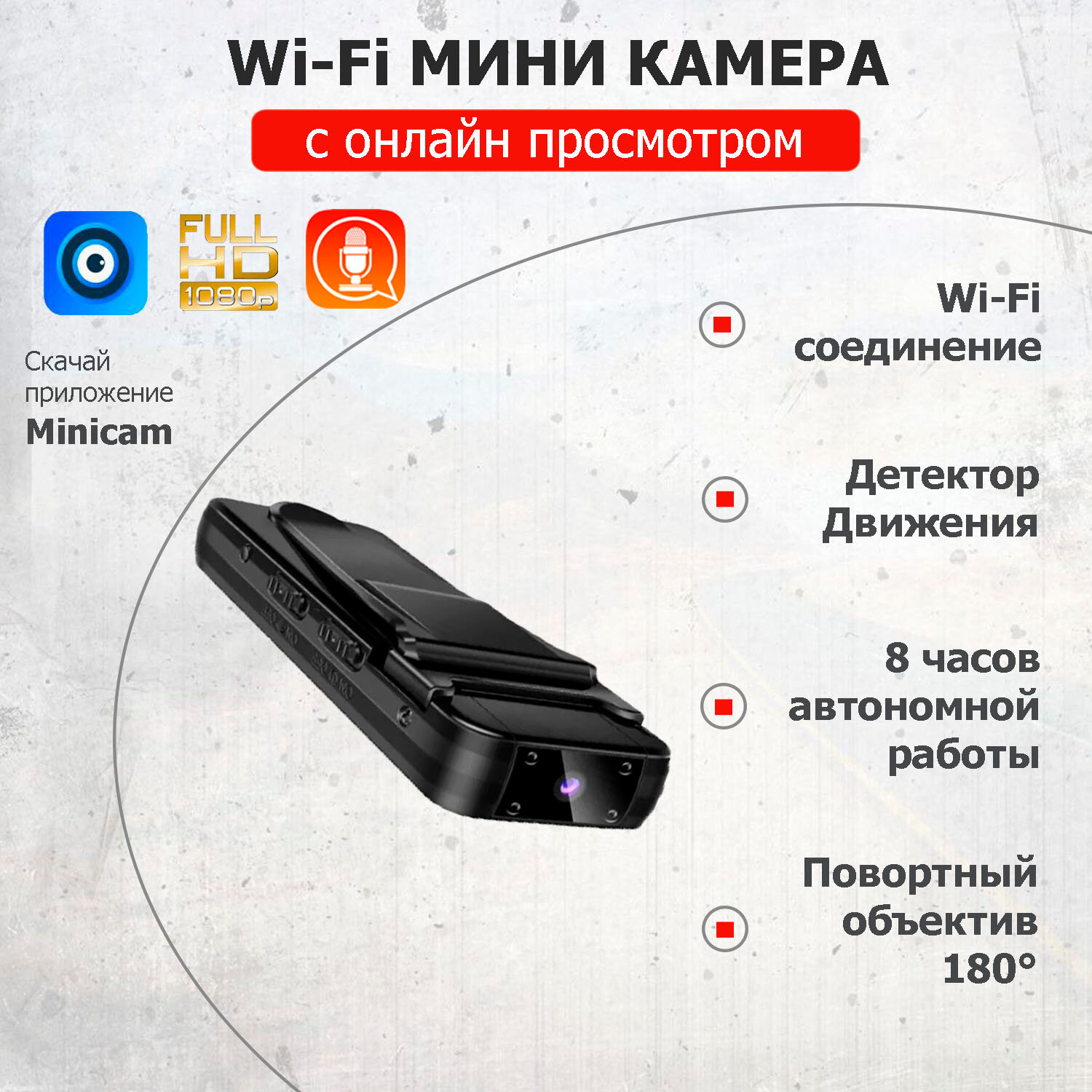 Беспроводная автономная мини видеокамера A8 с Wi-Fi (FulHD, поворотный объектив, удалённый просмотр, запись звука) интересное: