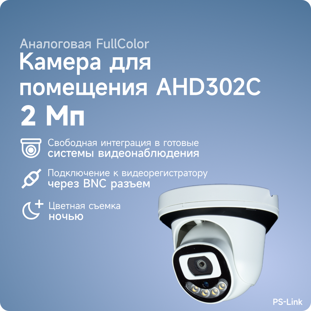 Купольная AHD камера видеонаблюдения PS-link AHD302C FullColor 2Мп интересное: