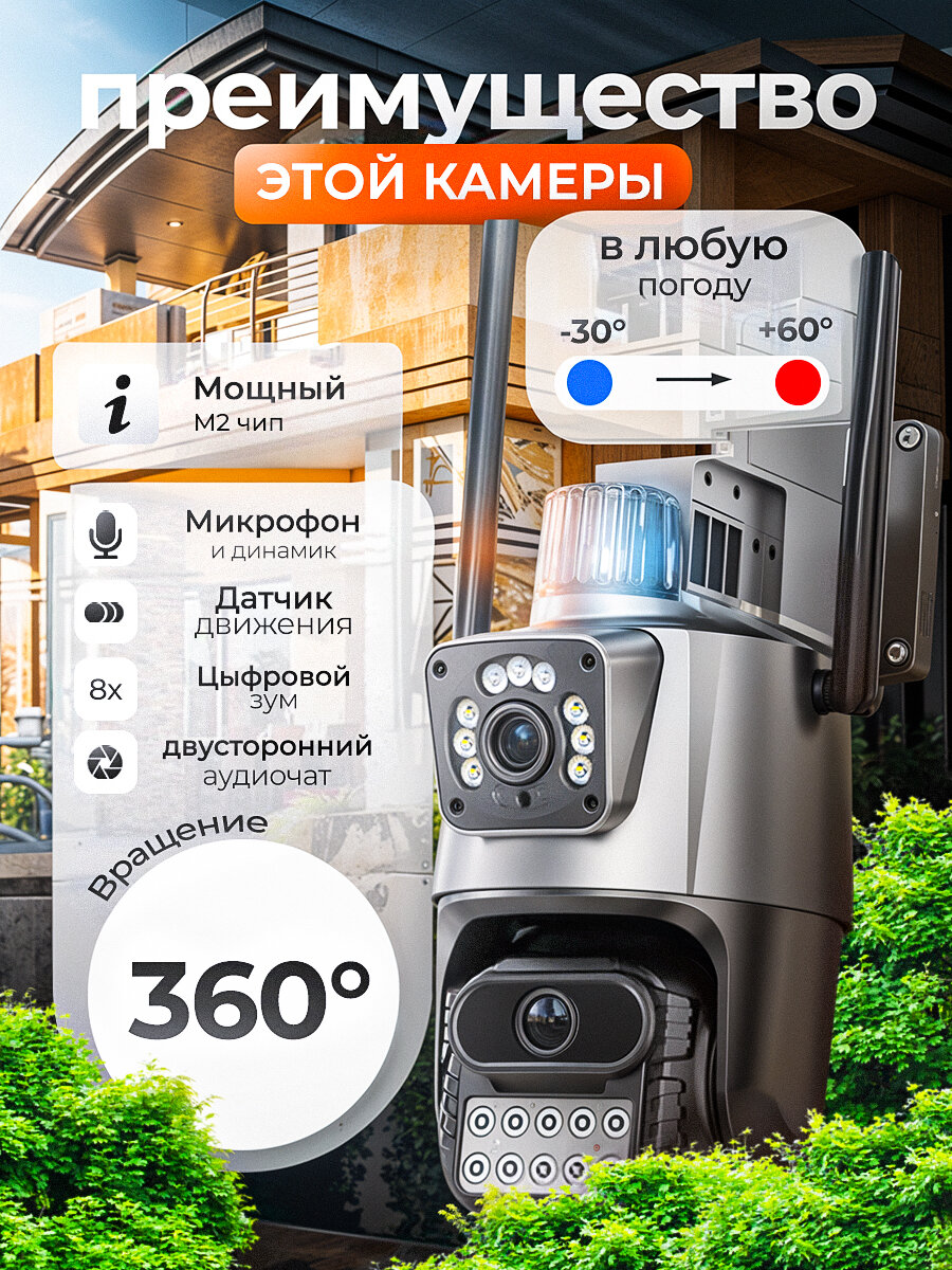Ниже Вы можете прочитать отзывы на Уличная камера Wi-Fi видеонаблюдения с 2-мя объективами, ознакомится с подробными характеристиками, посмотреть интересные обзоры и фотографии на Уличная камера Wi-Fi видеонаблюдения с 2-мя объективами.
