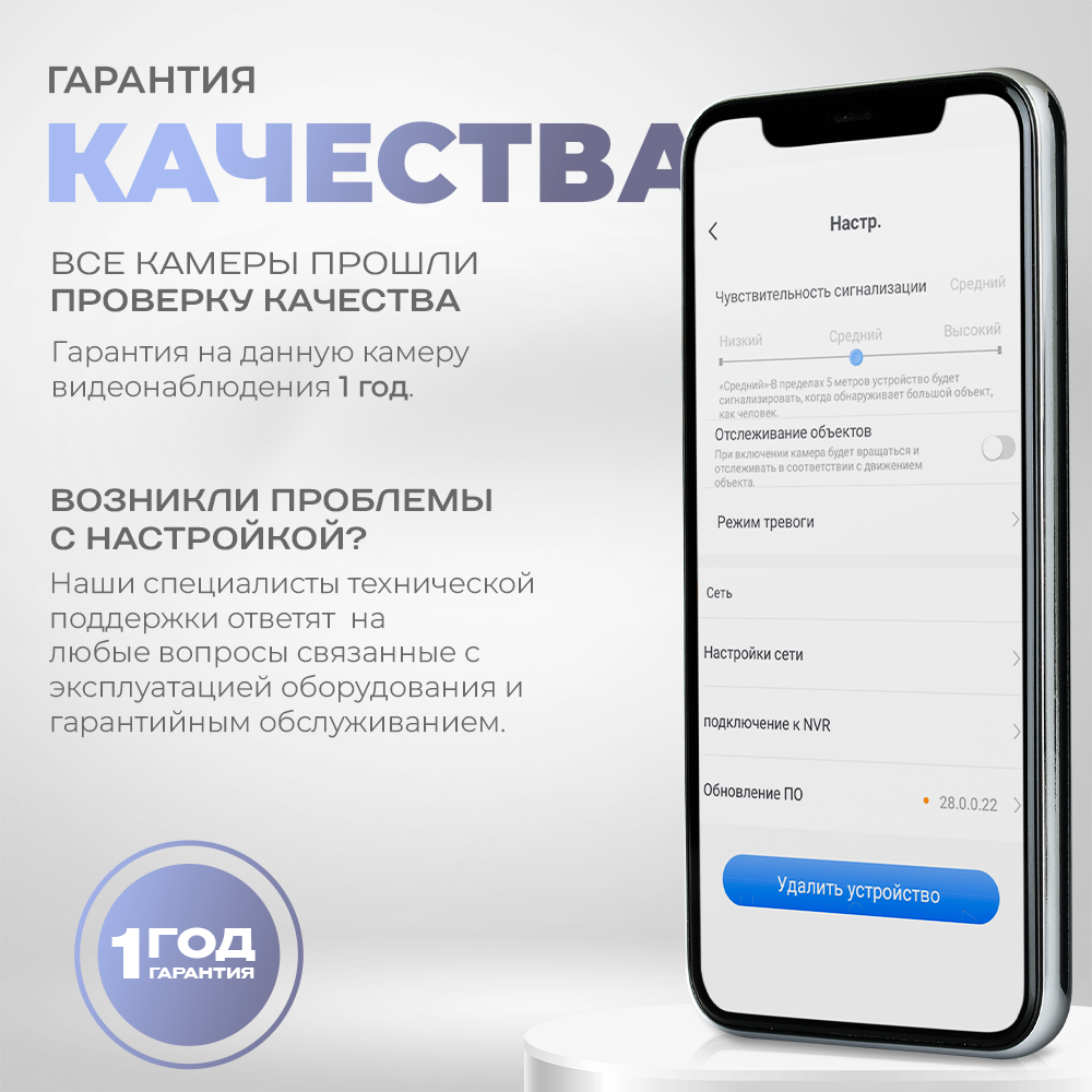 IP-камера видеонаблюдения Wi-Fi для дома с обзором 360 градусов белая