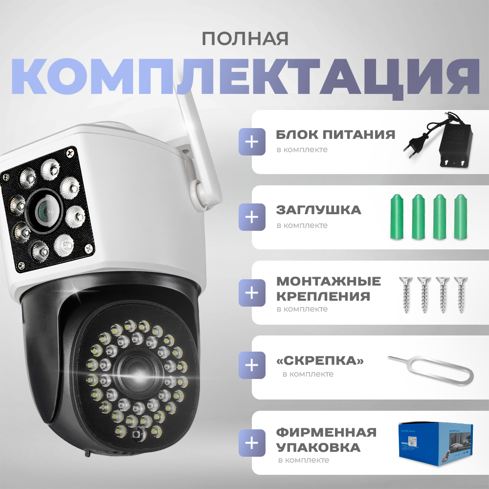 IP-камера видеонаблюдения Wi-Fi для дома с обзором 360 градусов белая