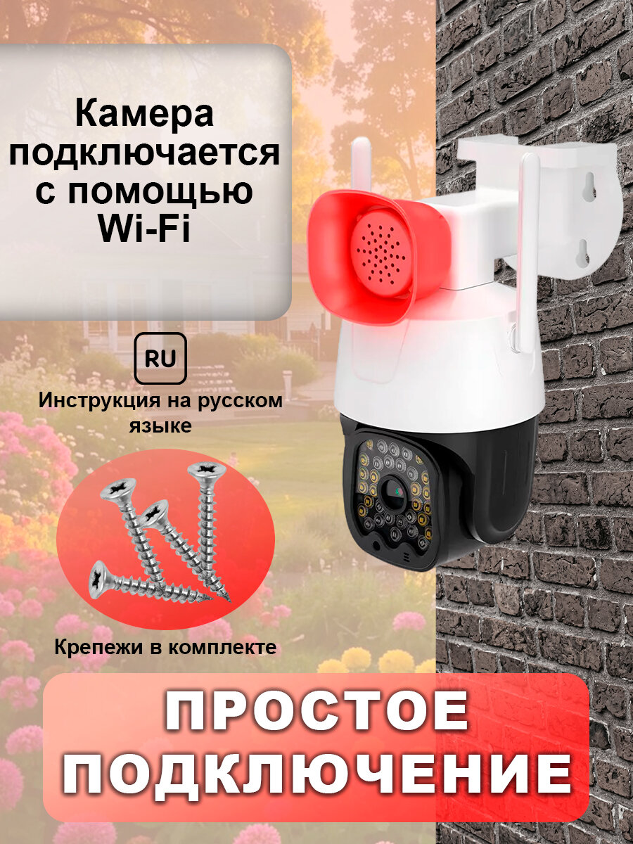 Камера видеонаблюдения с датчиком движения, поворотная, для улицы, ночная съемка, Wi-Fi, белый
