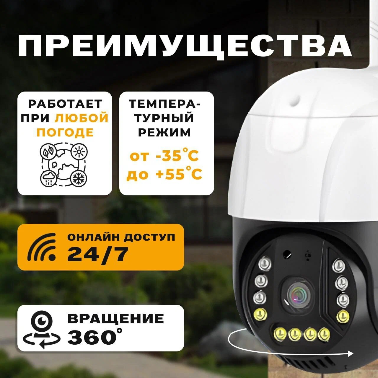 Камера видеонаблюдения купольная уличная Wi-Fi, 10 Мп, поворотная, IP66, ночной режим, сирена, цветное и черно-белое изображение