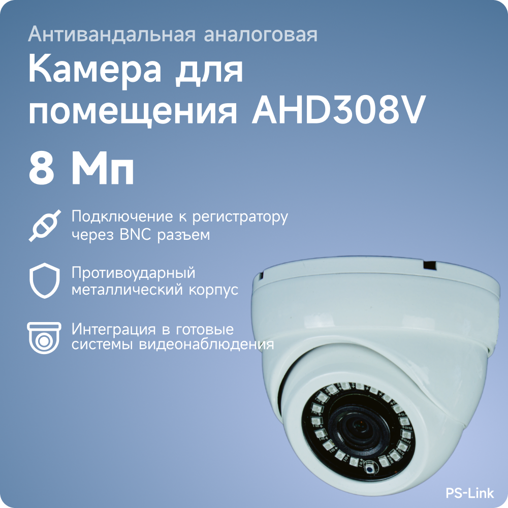 Купольная антивандальная AHD камера видеонаблюдения PS-link AHD308V 8Мп, угол обзора 90° интересное: