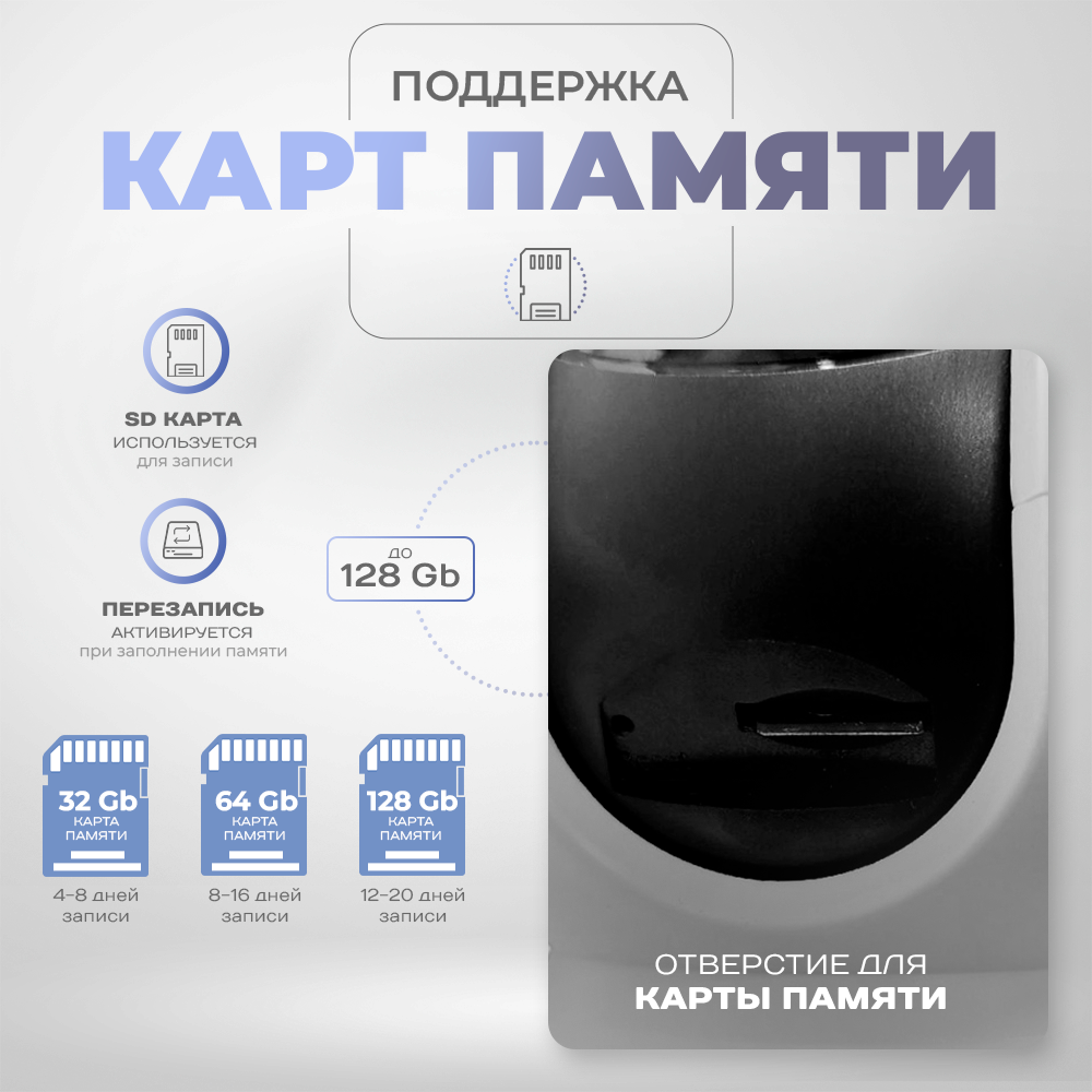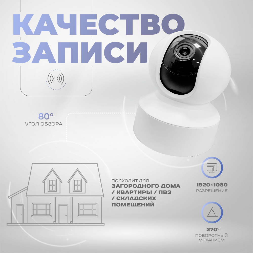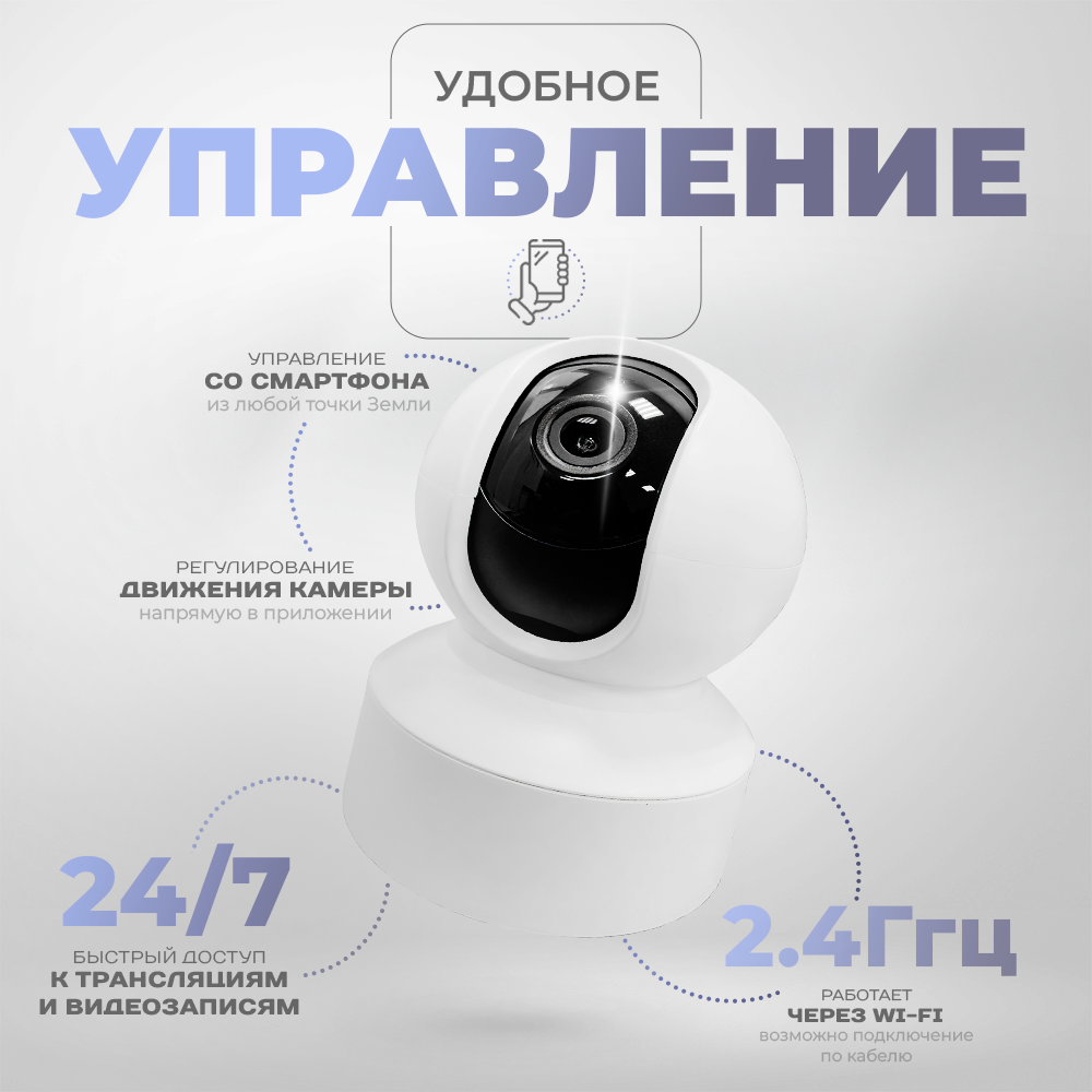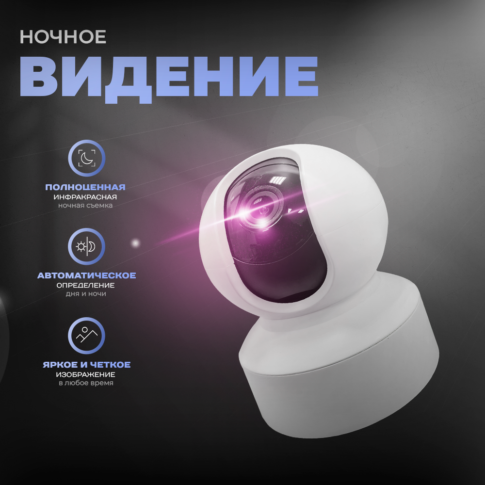 IP-камера видеонаблюдения Wi-Fi для дома с обзором 360 градусов белая
