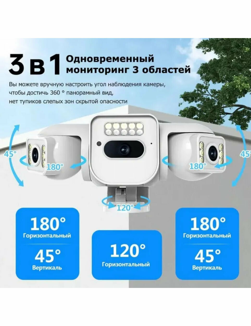 Уличная WiFi IP-камера видеонаблюдения с тремя камерами, ночной съемкой, микрофоном черная интересное: