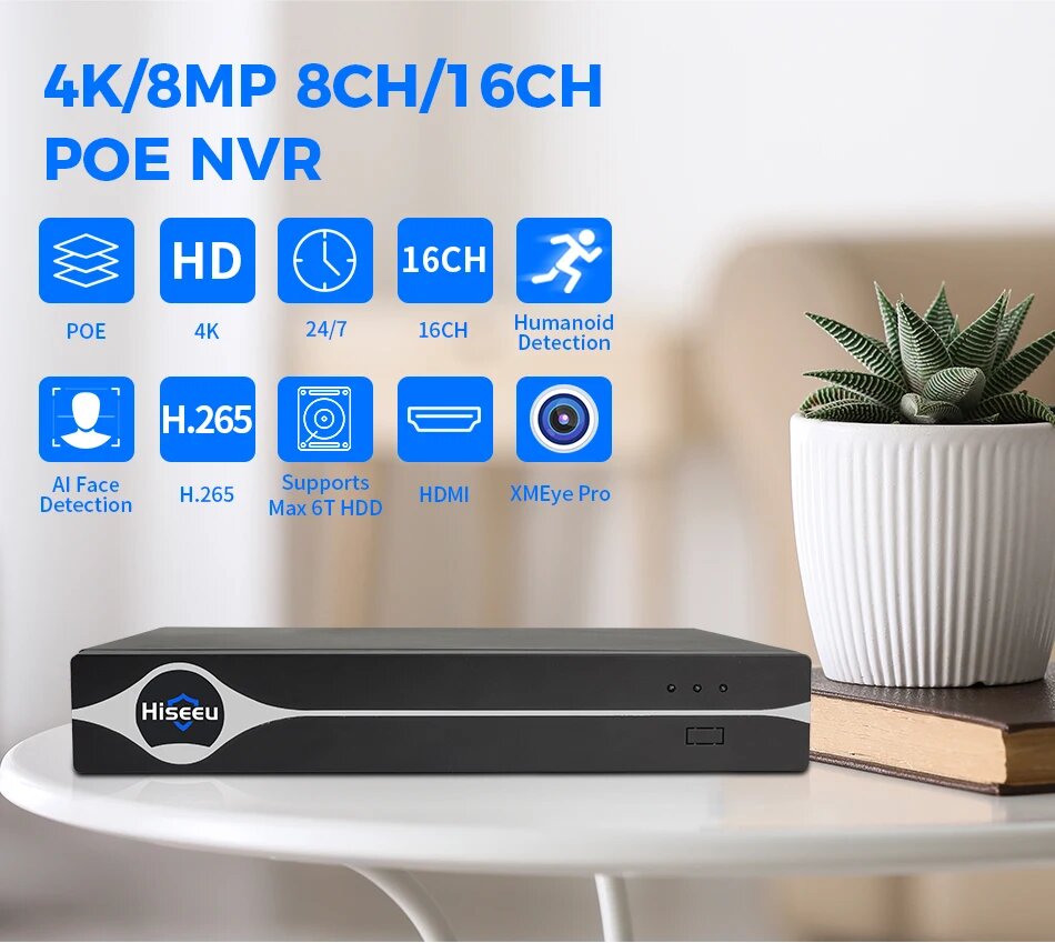 Hiseeu 8CH 4K POE NVR Видеорегистратор видеонаблюдения, Нет, 8-КАНАЛЬНЫЙ интересное: