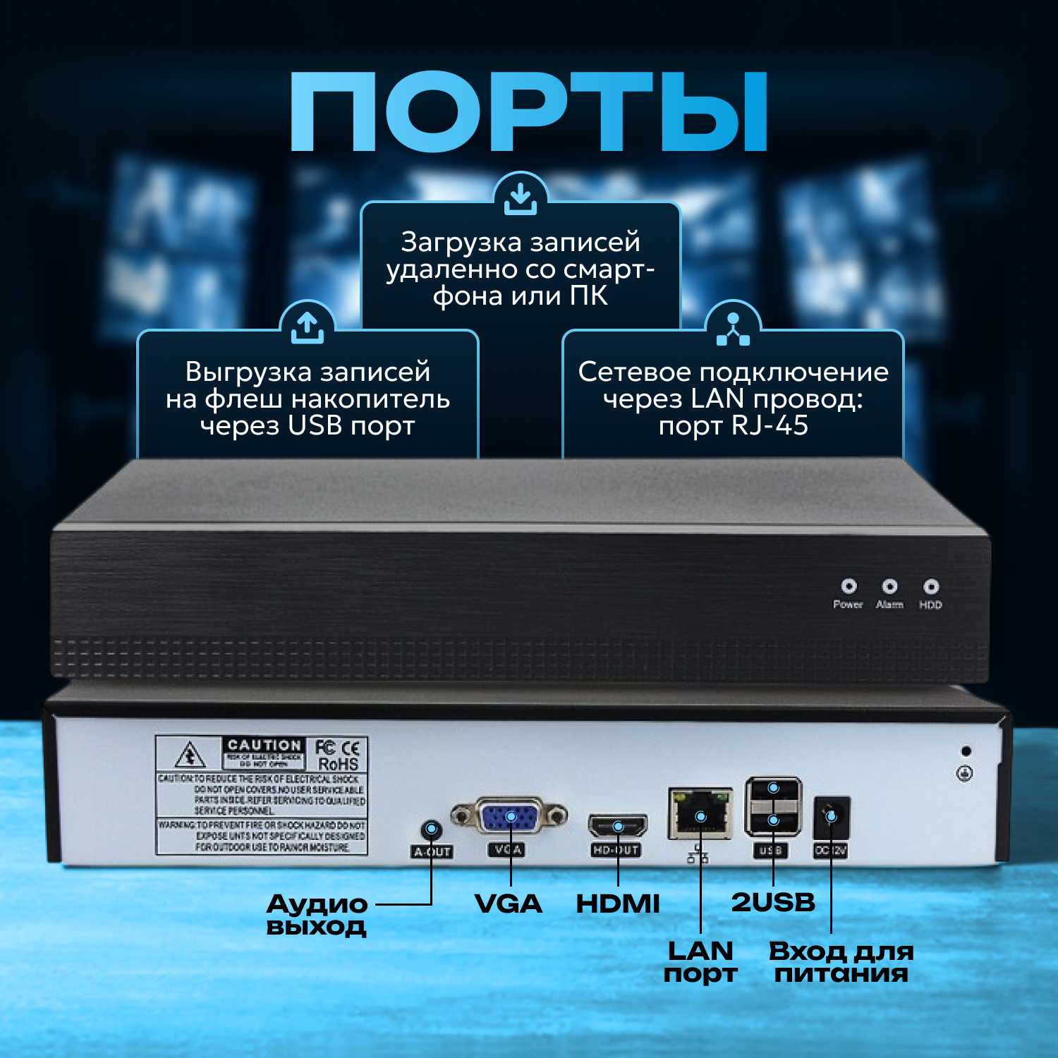 IP видеорегистратор 16 канальный, регистратор для камер видеонаблюдения, поддержка камер 4K, сетевое подключение через LAN порт интересное:
