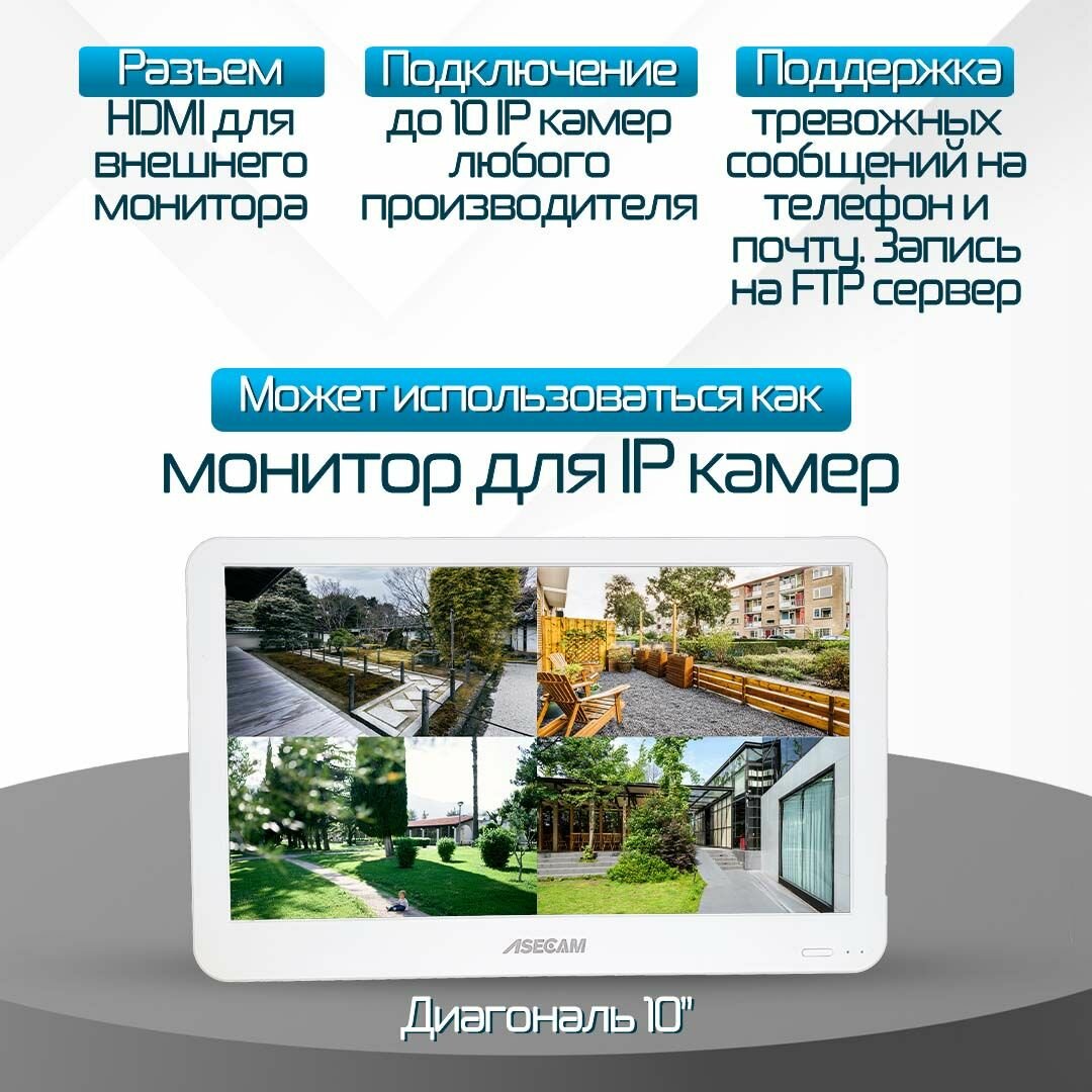 Купить Видеорегистратор с монитором 10" ASECAM, 10 каналов 8POE NVR, xMEye