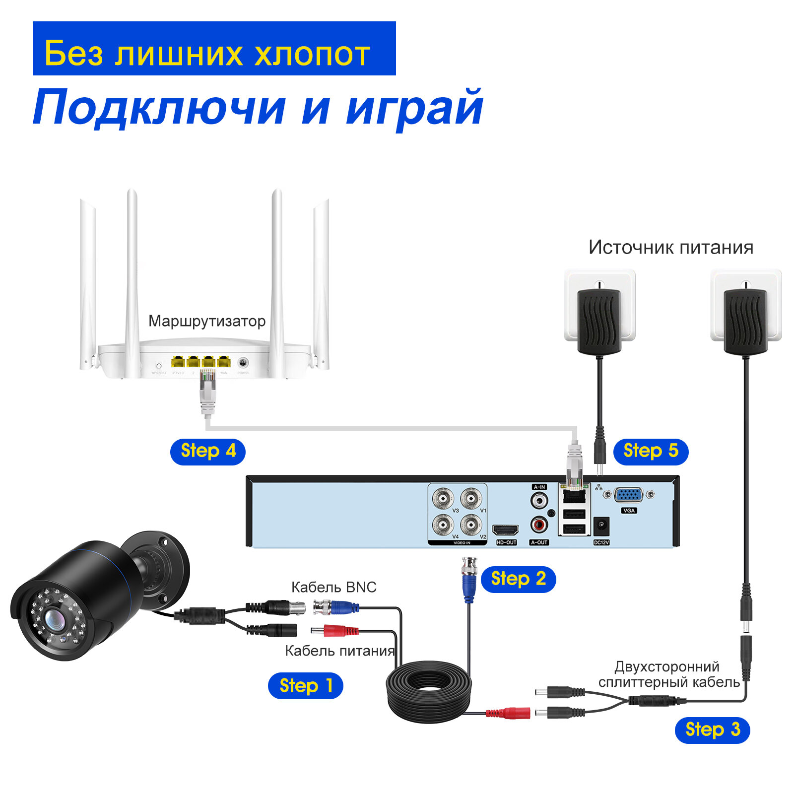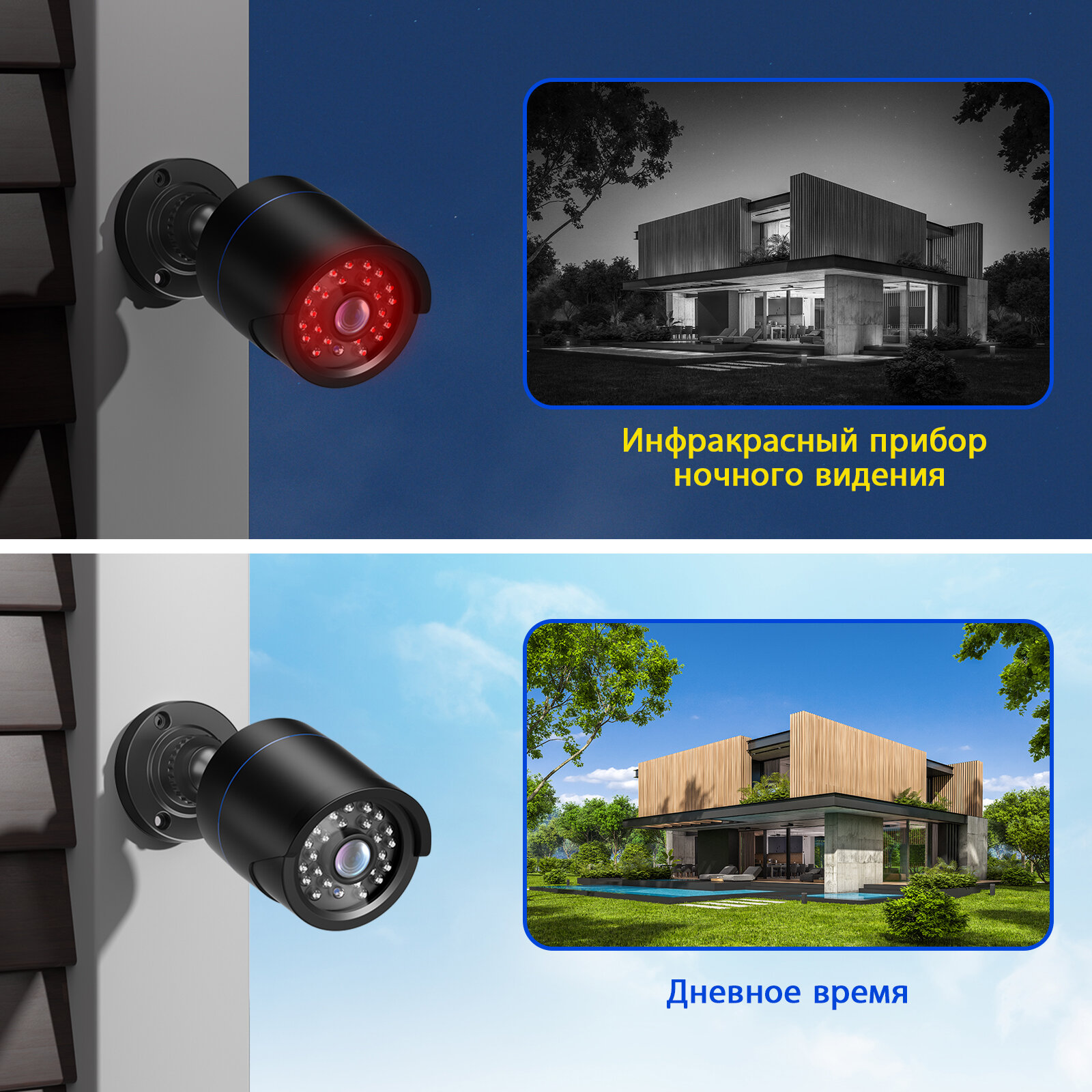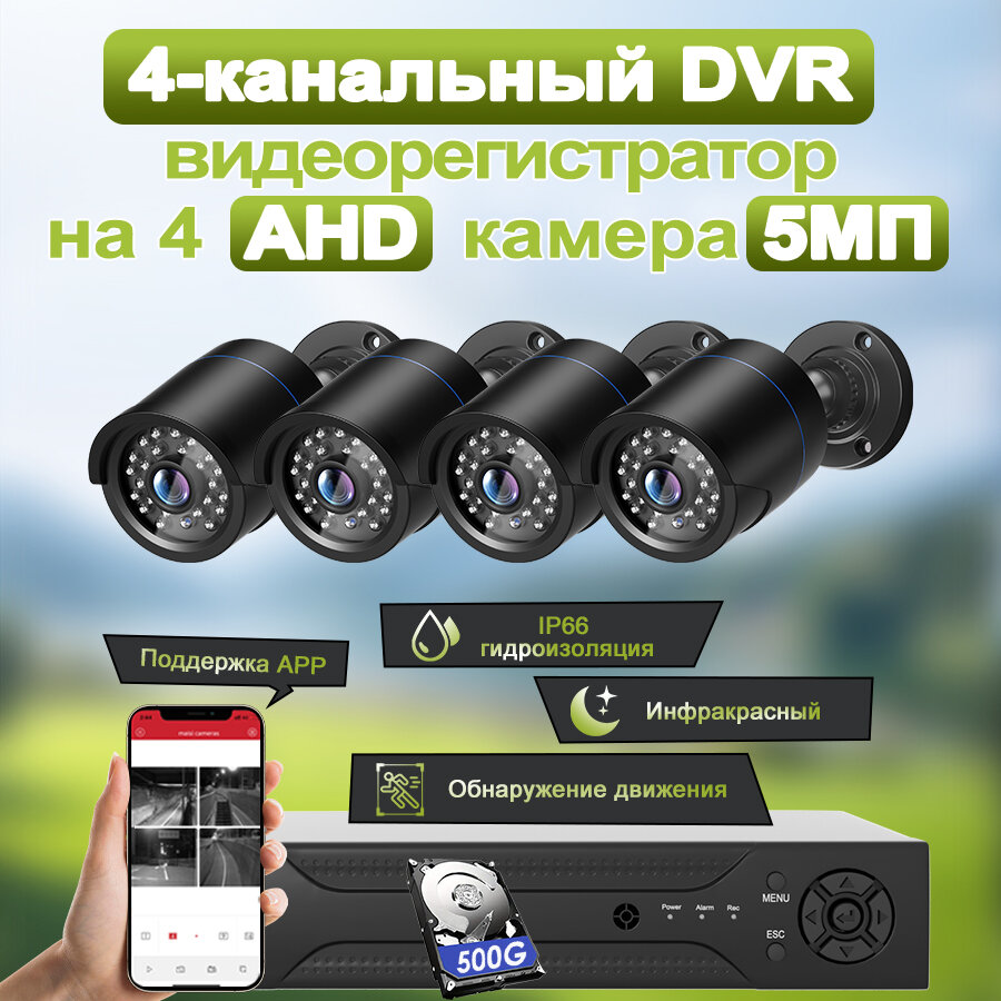 CAMSICA Комплект AHD видеонаблюдения 4 уличные камеры 5МП c 500Гб жестким диском интересное: