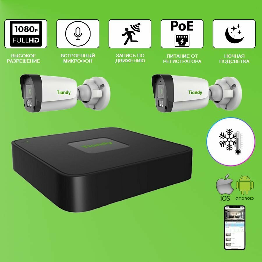 Комплект видеонаблюдения 2 Tiandy для улицы/в холодные/мокрые помещения 2Мп