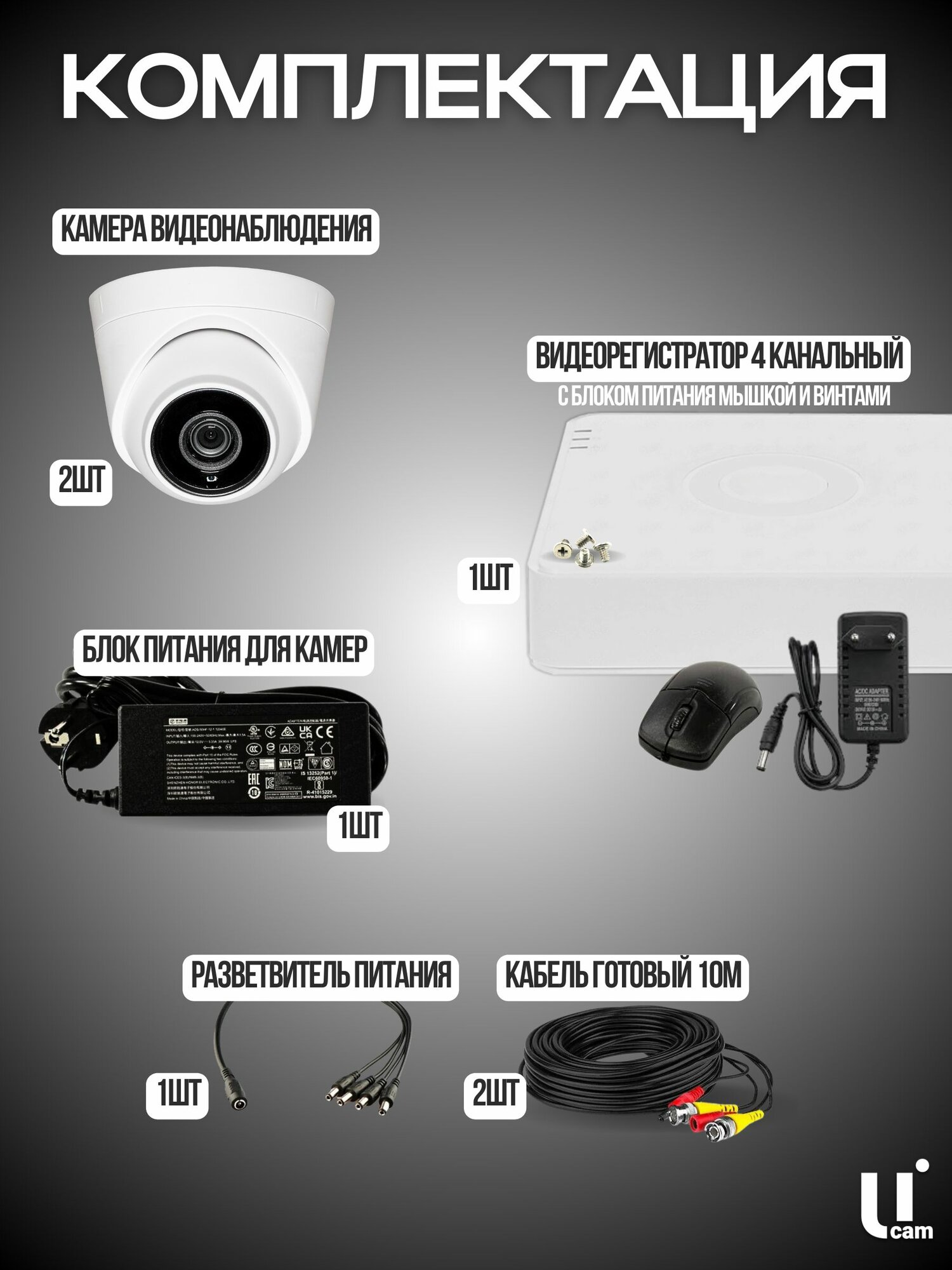 Купить Комплект видеонаблюдения с готовыми кабелями, 2 камеры 2Мп, Ucam