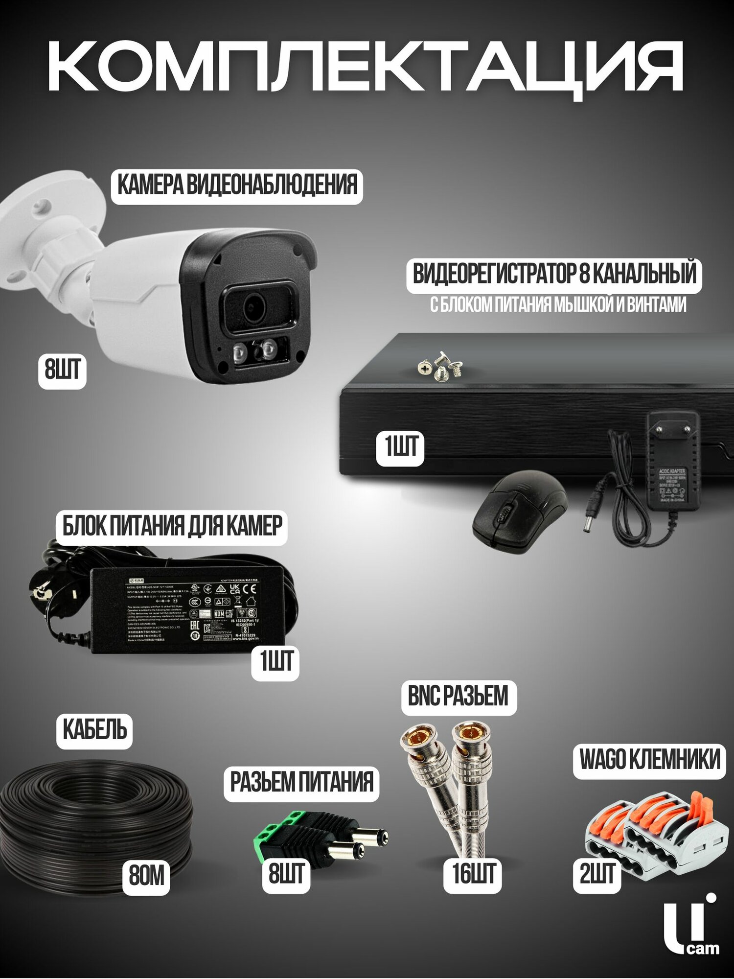 Комплект видеонаблюдения, 8 камер 2Мп, Ucam интересное:
