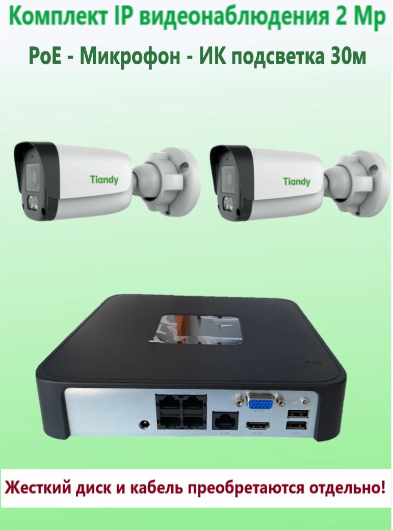 Комплект IP видеонаблюдения TIANDY на 2 камеры, PoE, 2Мп, с микрофоном интересное: