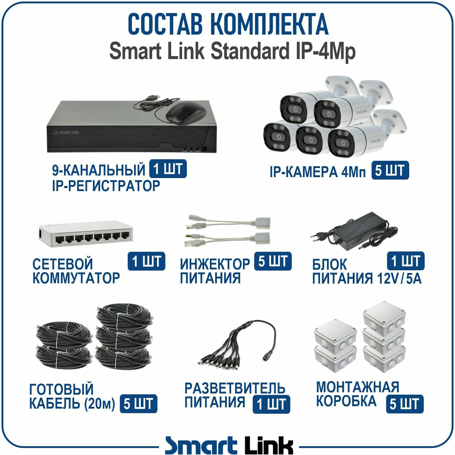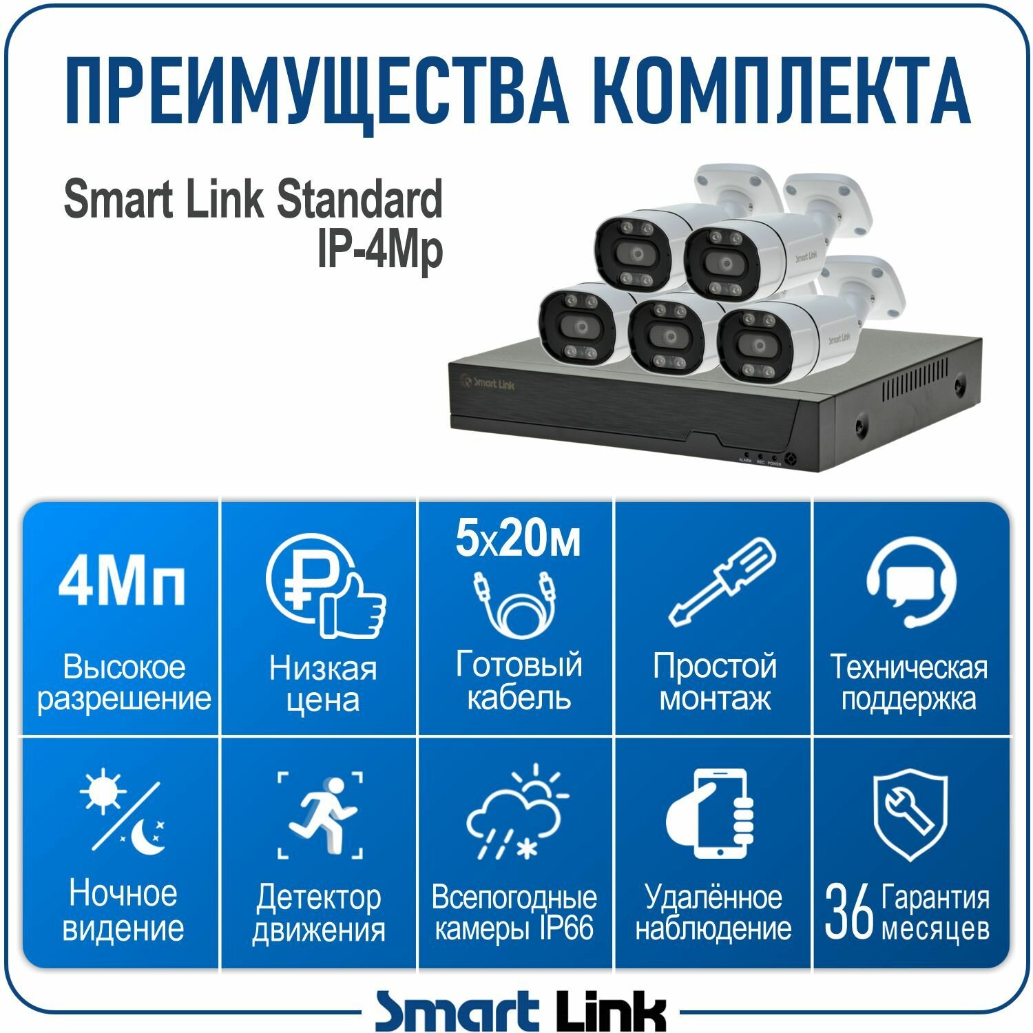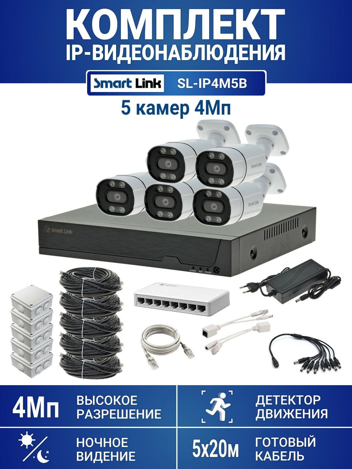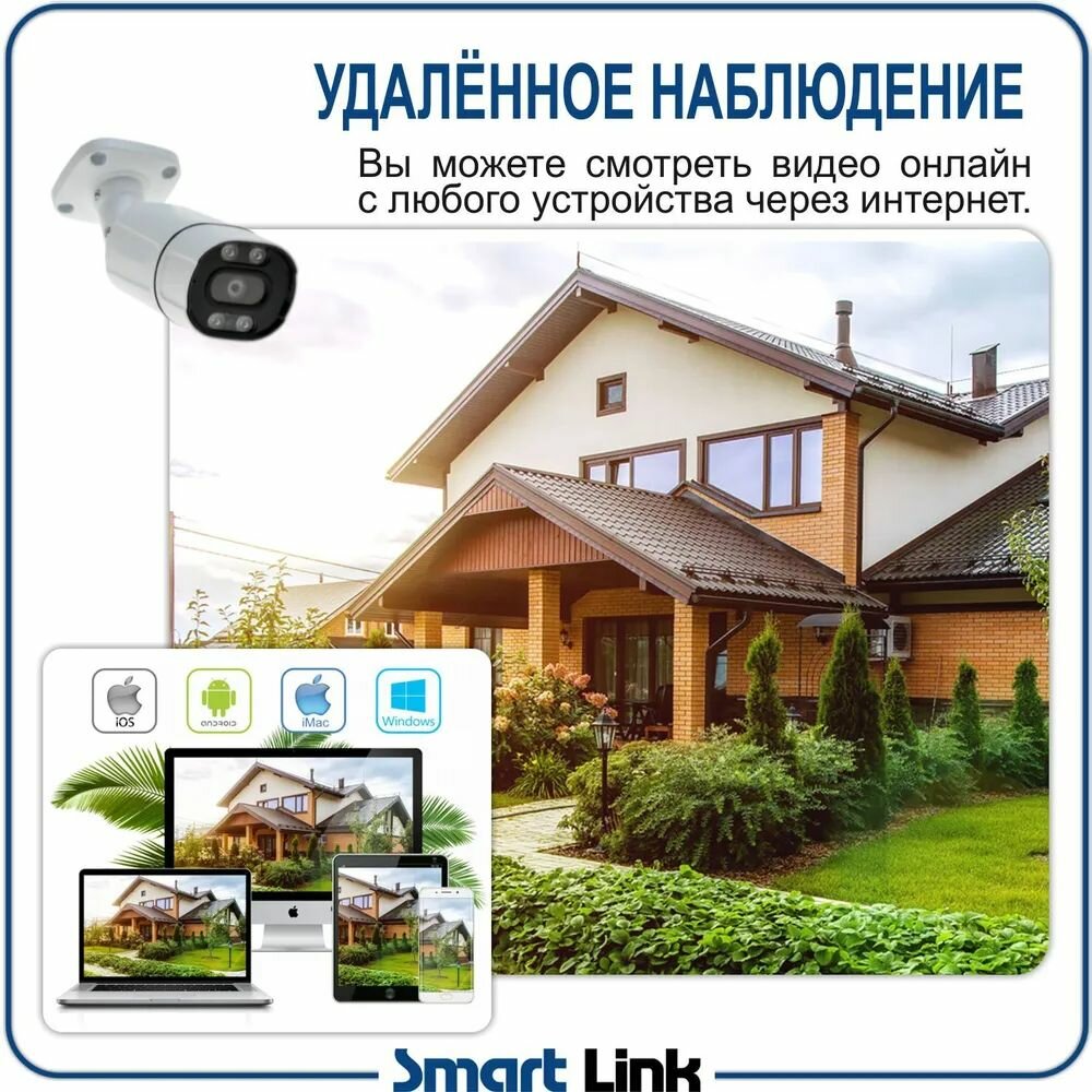 Купить Комплект IP-видеонаблюдения уличный Smart Link SL-IP4M5B, 5 камер 4Мп, с записью на HDD до 8Tb, для дома/дачи/бизнеса