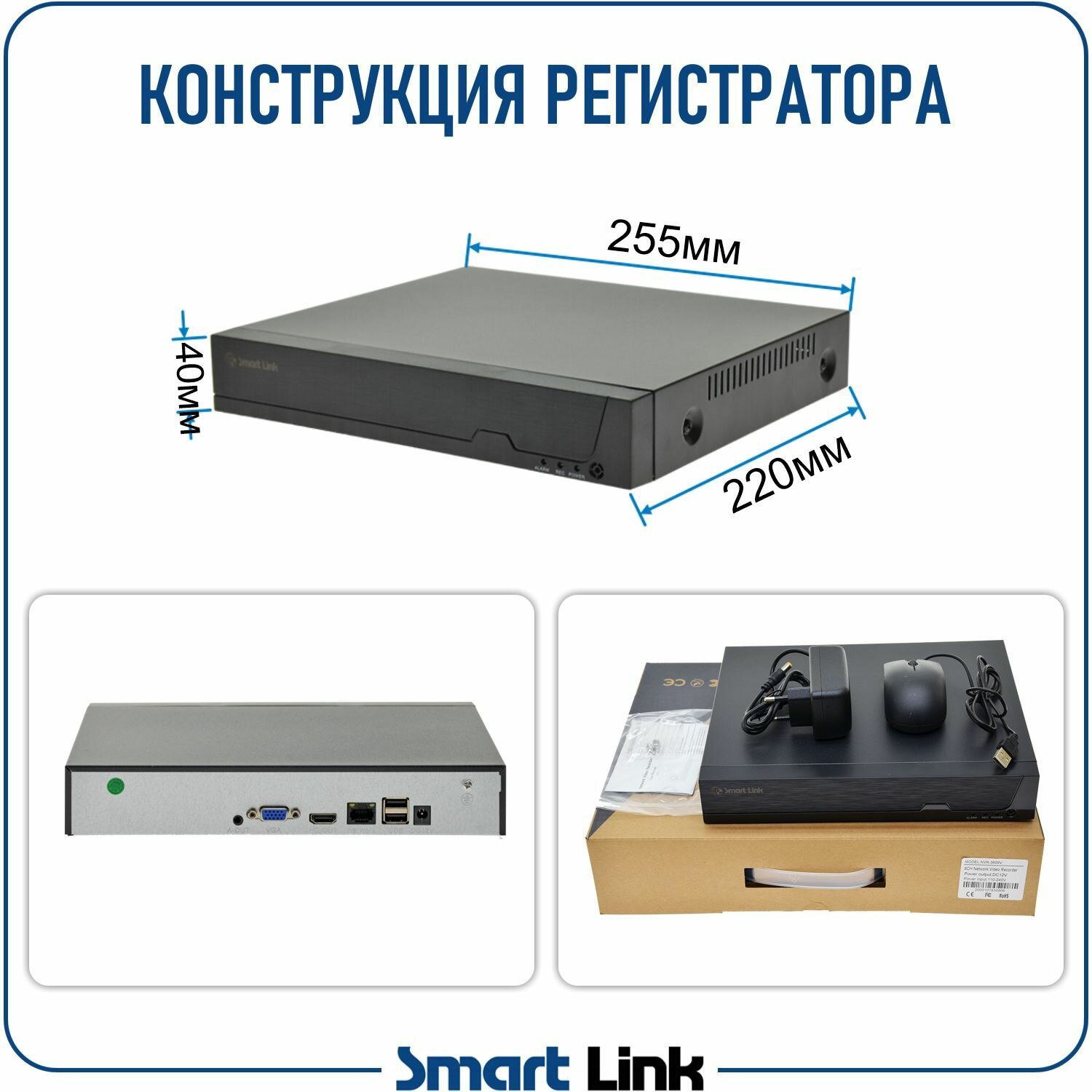 Комплект IP-видеонаблюдения уличный Smart Link SL-IP4M1B, 1 камера 4Мп, с записью на HDD до 8Tb, для дома/дачи/бизнеса