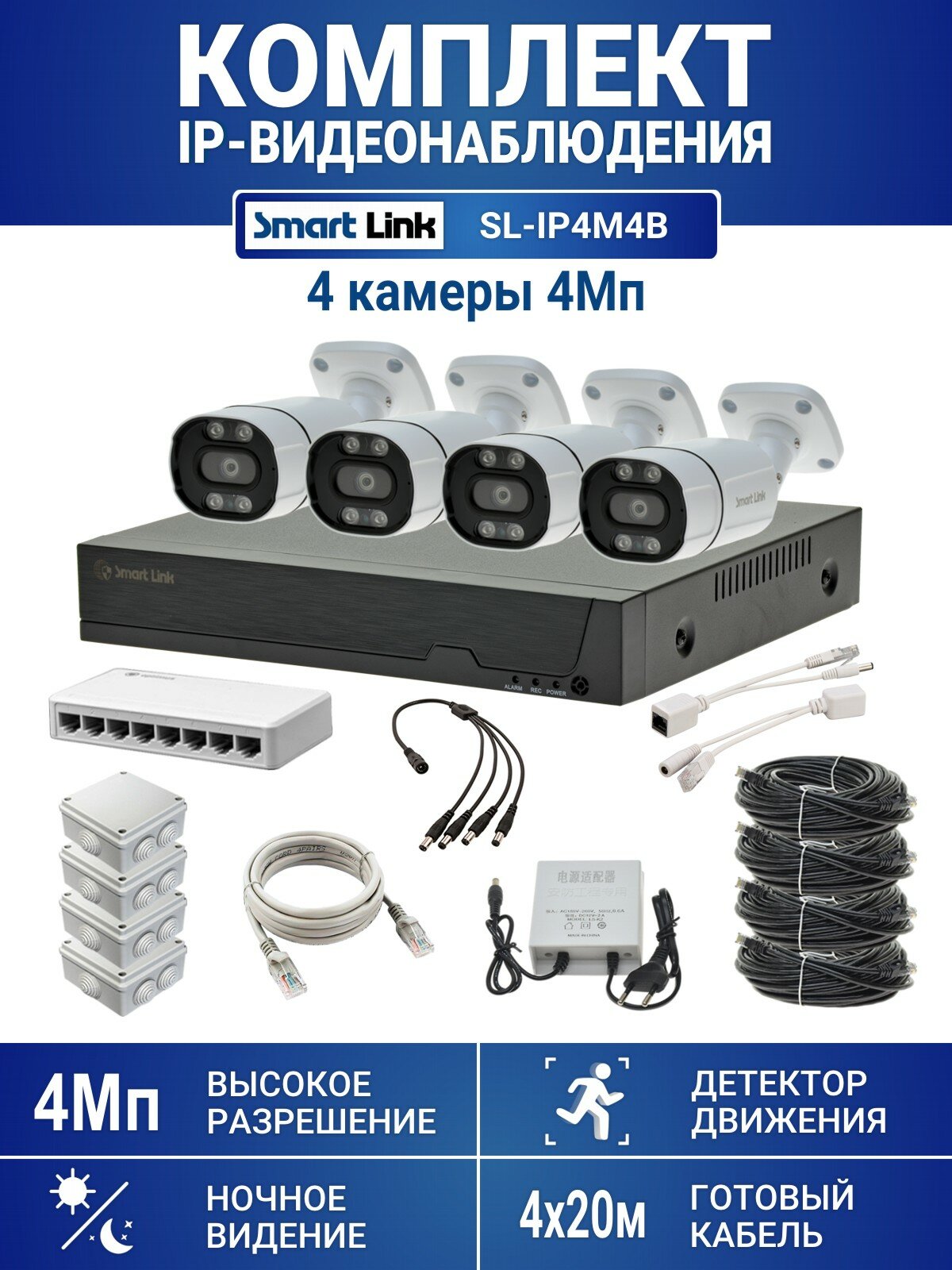Купить Комплект IP-видеонаблюдения уличный Smart Link SL-IP4M4B, 4 камеры 4Мп, с записью на HDD до 8Tb, для дома/дачи/бизнеса