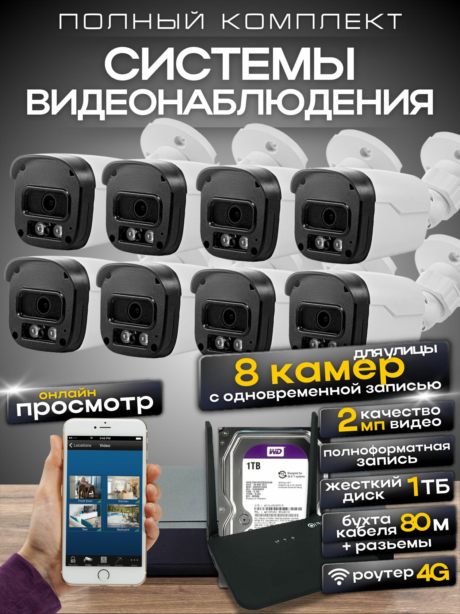 Купить Комплект видеонаблюдения с 3/4G роутером, 8 камер 2Мп, Ucam