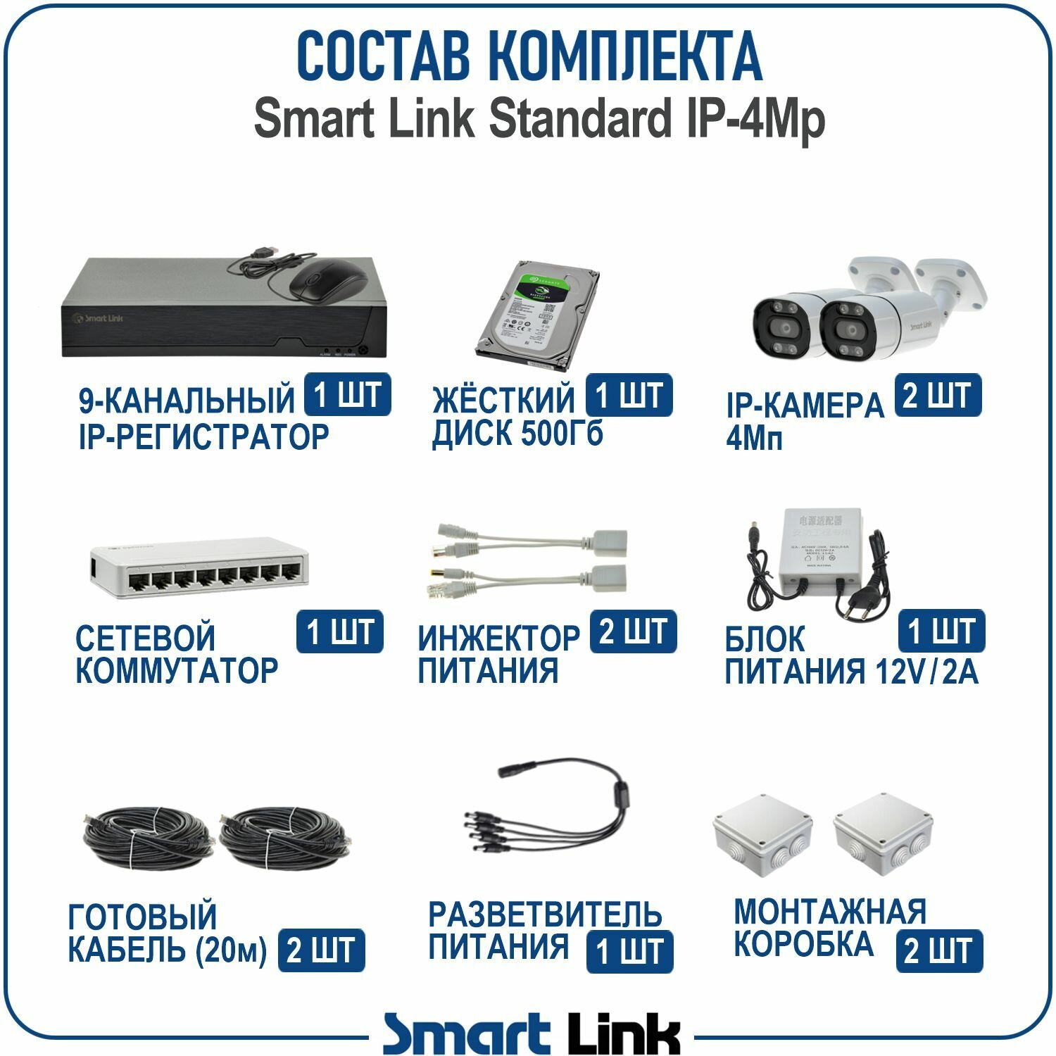 Купить Комплект IP-видеонаблюдения уличный Smart Link SL-IP4M2B-H, 2 камеры 4Мп, с жёстким диском 500Gb, для дома/дачи/бизнеса