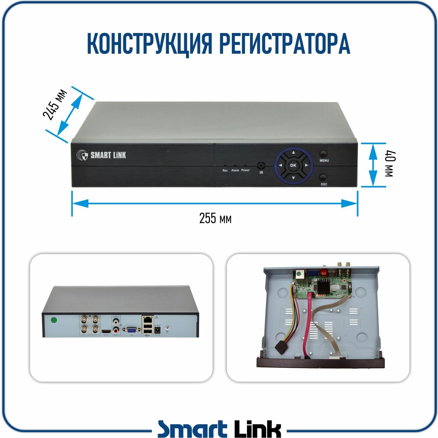 СохранитьГотовый комплект видеонаблюдения 2Мп уличный, на 4 камеры, с жёстким диском 500Gb, с удалённым просмотром, для дома, дачи, бизнеса. Smart Link SLE-2M2N4M-H интересное: