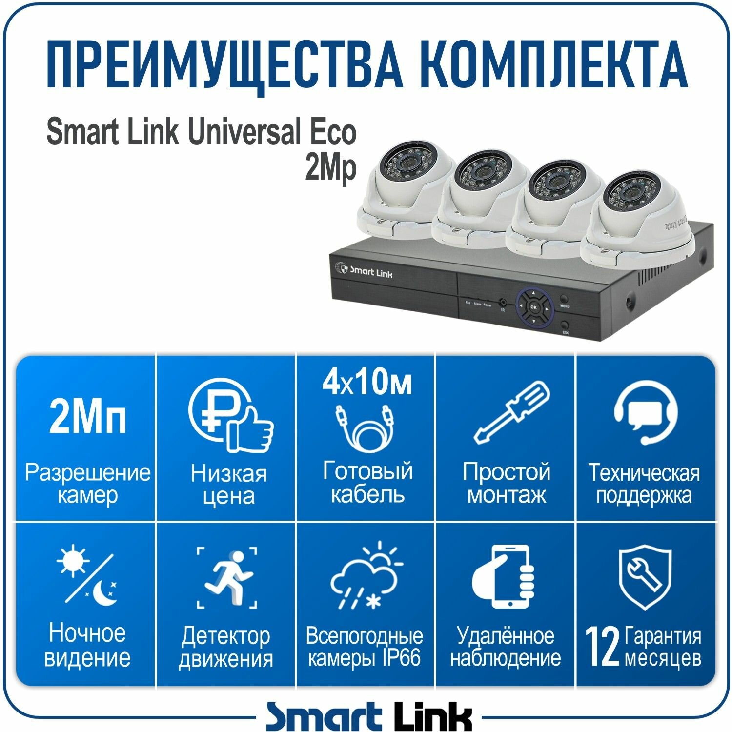 Купить Готовый комплект видеонаблюдения 2Мп уличный, на 4 камеры, с жёстким диском 500Gb, с удалённым просмотром, для дома, дачи, бизнеса. Smart Link SLE-2M2N4M-H