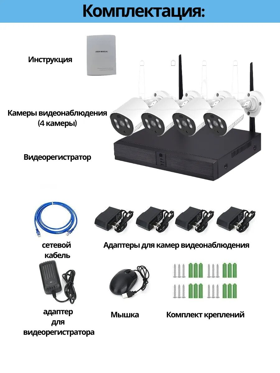 Готовый комплект видеонаблюдения "5G Kit", система видеонаблюдения 4 камеры, Full HD, IP66, 3MP интересное: