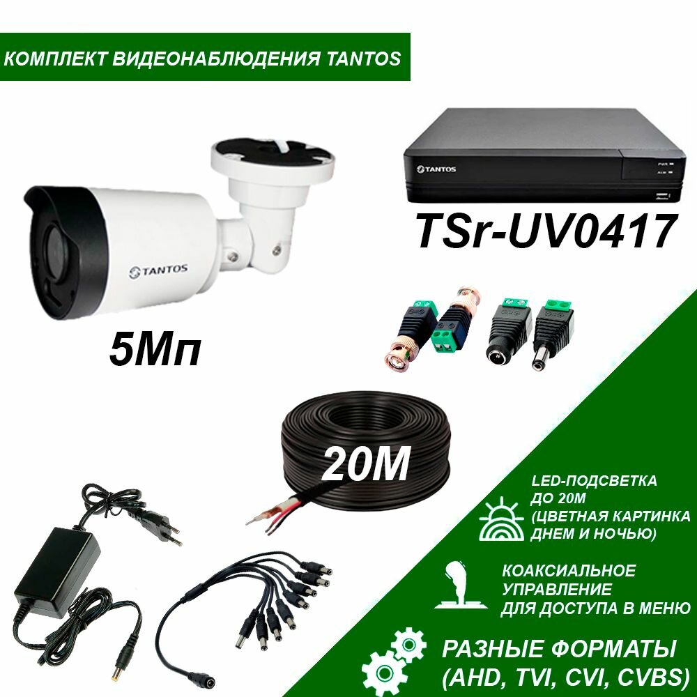 Купить Комплект уличного видеонаблюдения TANTOS 5МП на 1 камеру с цветной ночной съемкой