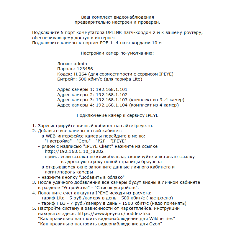 Комплект из 4 купольных камер IP-видеонаблюдения 2 Мп для ПВЗ / PoE / IPEYE интересное: