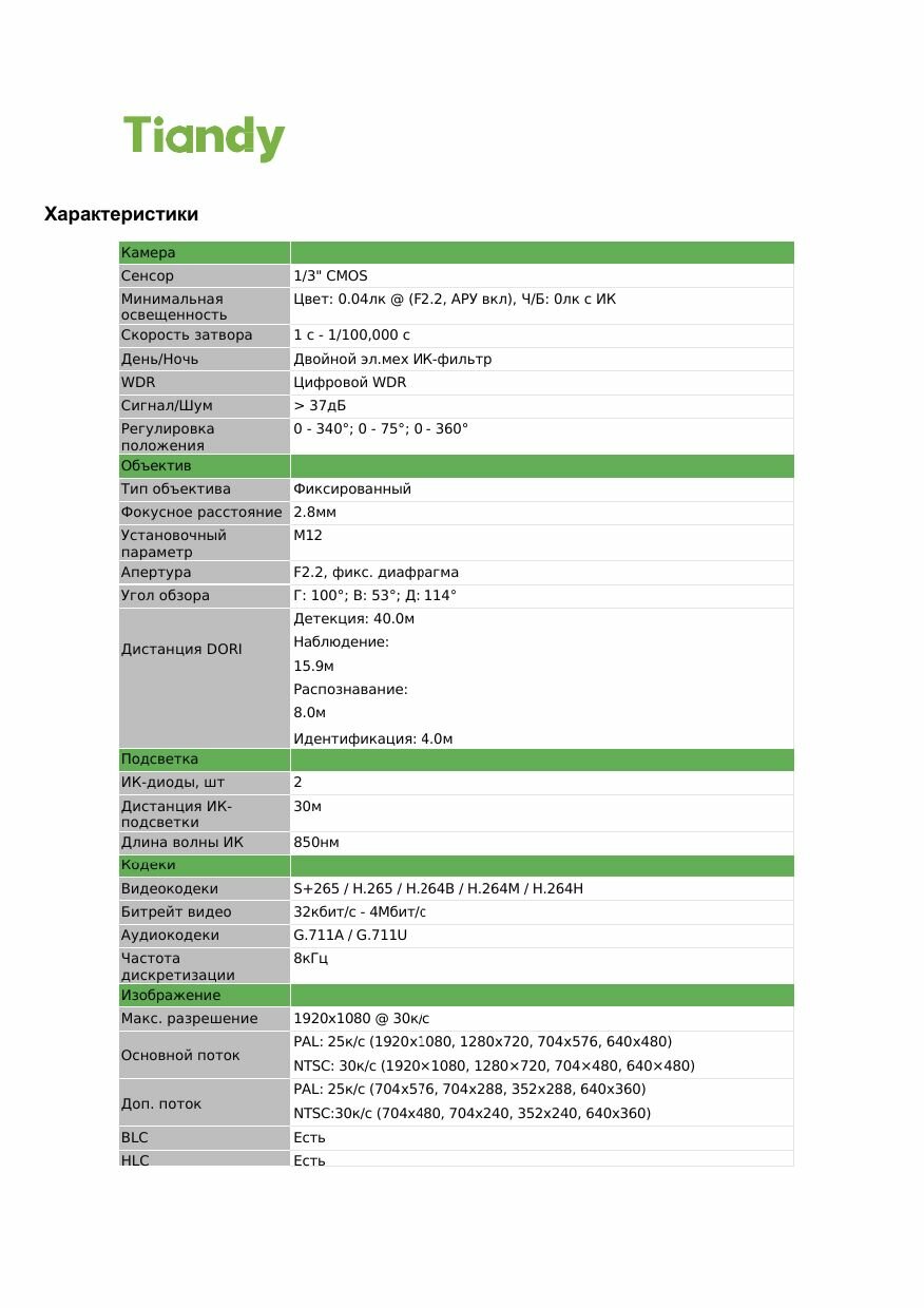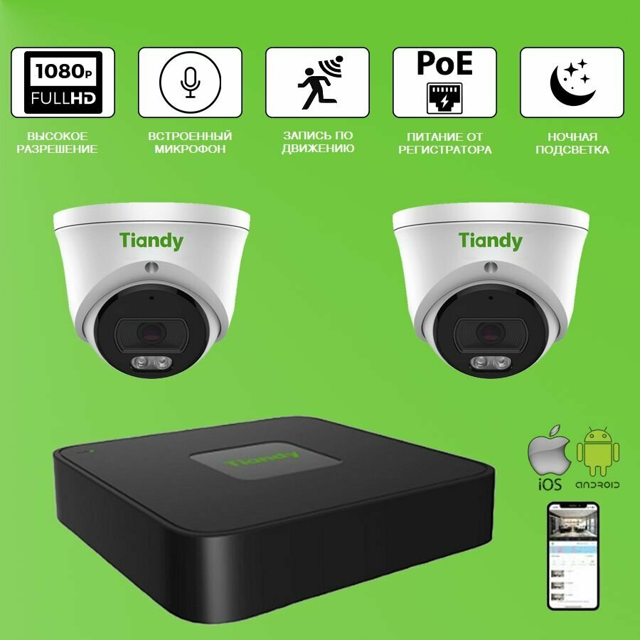 Комплект видеонаблюдения Tiandy для помещения 2Мп интересное: