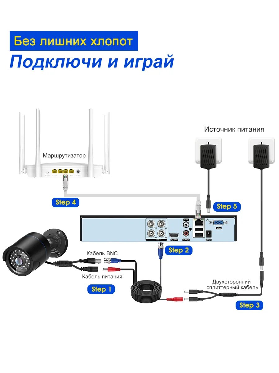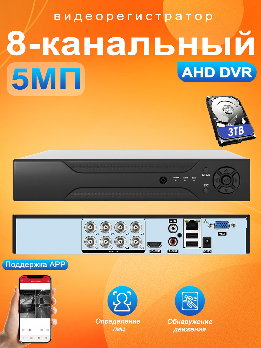 Видеорегистратор видеонаблюдения на 8 каналов 5 МП Не HDD