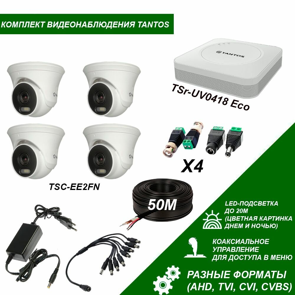 Комплект уличного видеонаблюдения TANTOS 2МП на 4 уличные камеры с цветной ночной съемкой