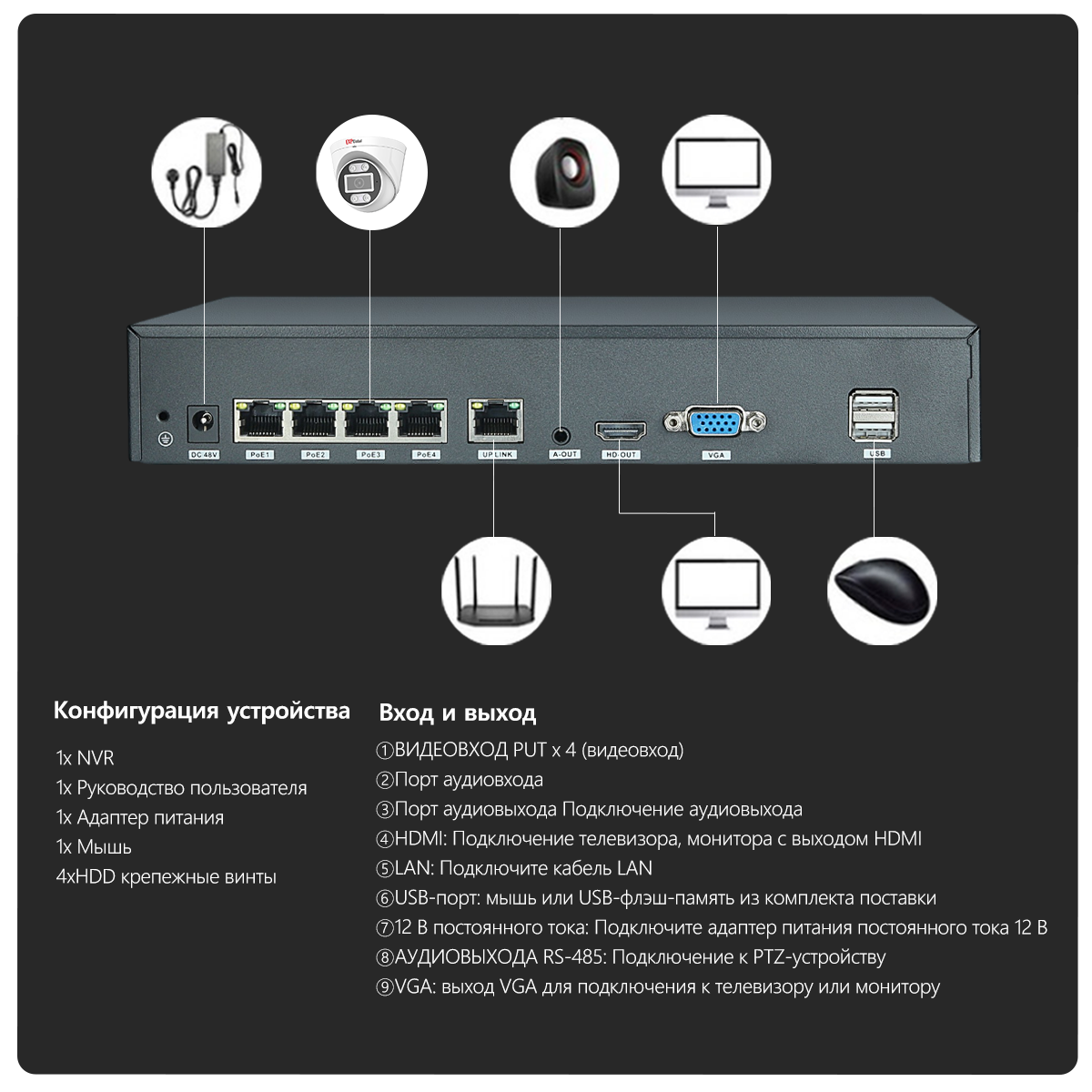 Готовый комплект IP видеонаблюдения на 4 внутренние 5Мп камеры, ИК-подсветка (Кабель в комплект не входит) интересное: