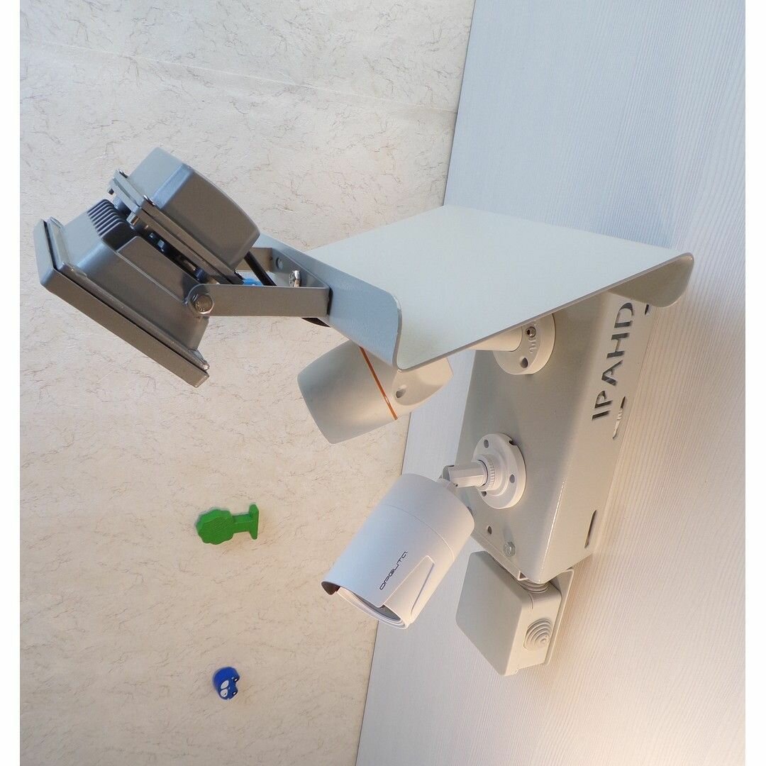 Кронштейн на столб для камеры, прожектора с козырьком, пластиной для коробки IPAHD-5-214548 серый интересное: