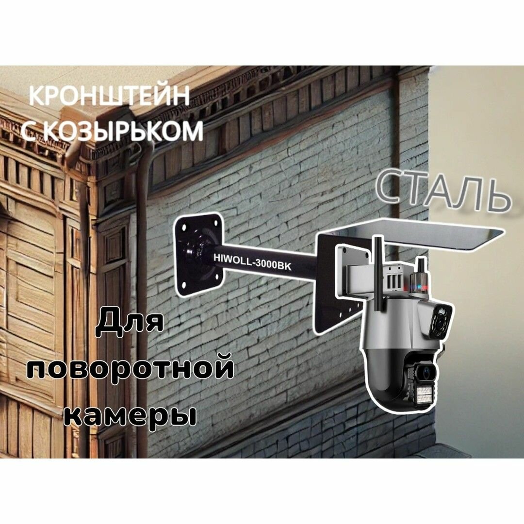 Кронштейн для поворотной камеры с вылетом 25см и козырьком для защиты от дождя, снега и солнца "HIWOLL-MAIMA-216162" черный, сталь интересное:
