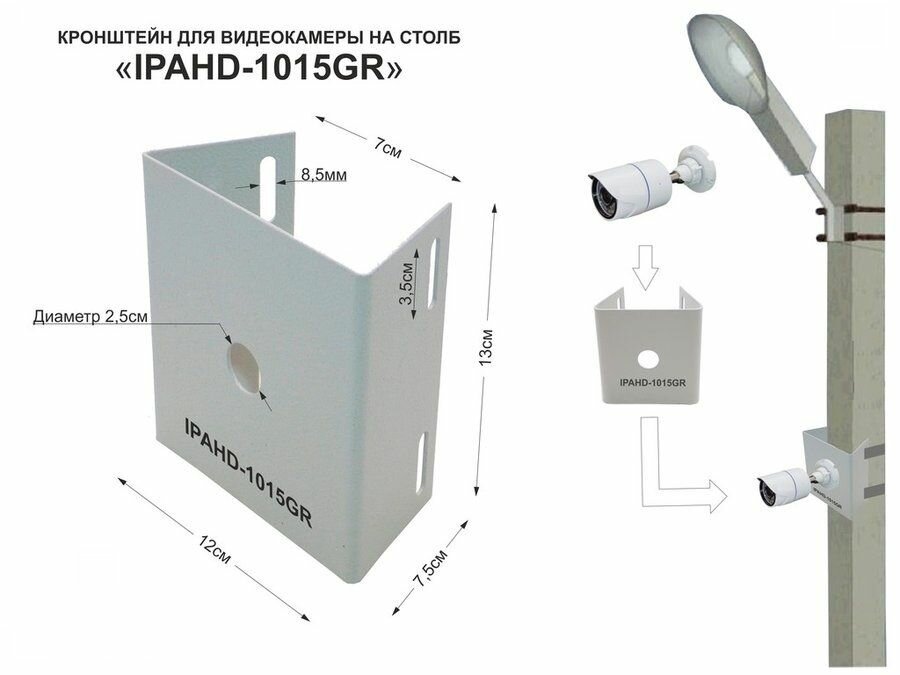 Кронштейн для видеокамеры или прожектора на столб "IPAHD-1015GR" крепится СИП-лентой интересное: