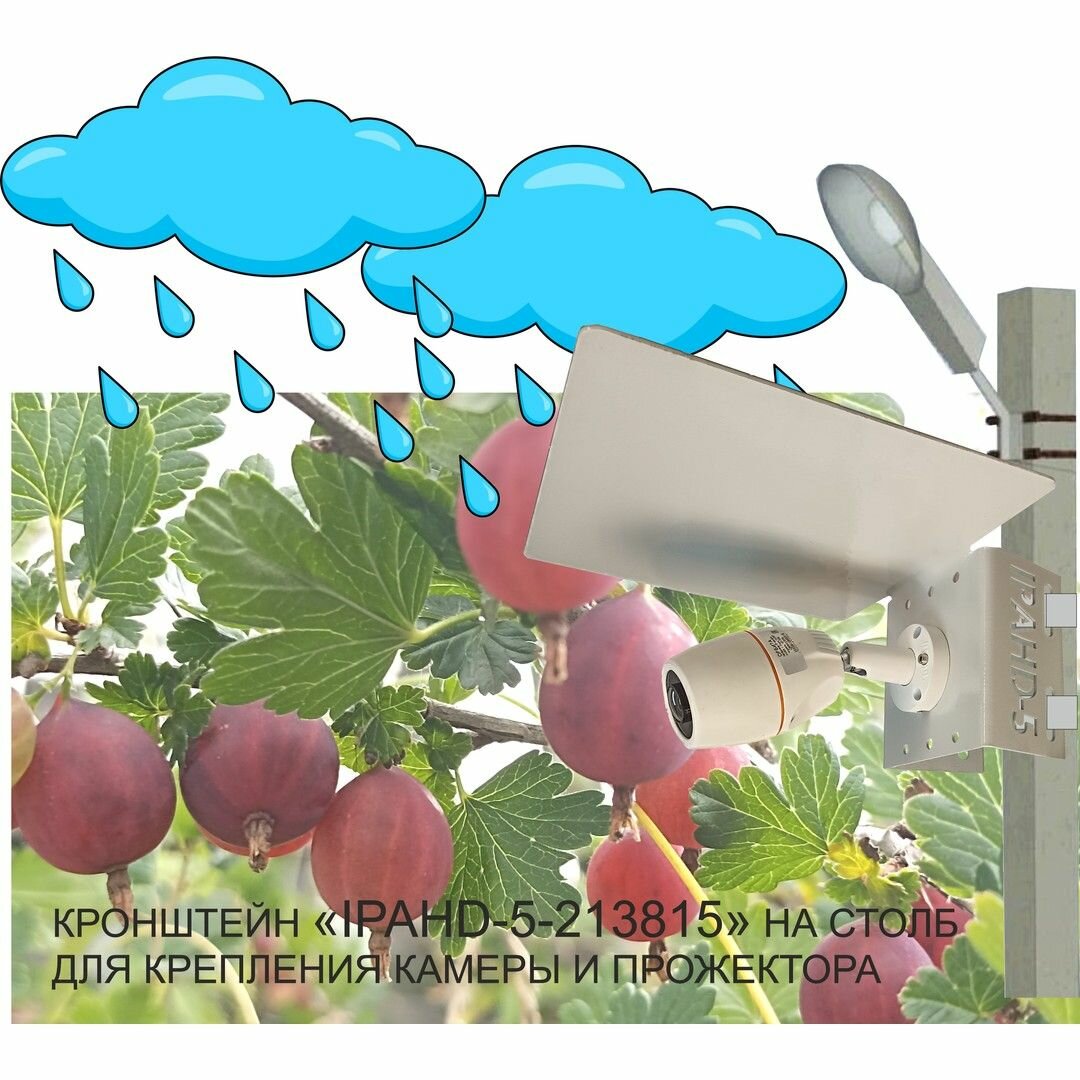 Кронштейн с козырьком для камеры видеонаблюдения на столб "IPAHD-5-213815" цвет серый, крепится СИП-лентой или хомутом интересное: