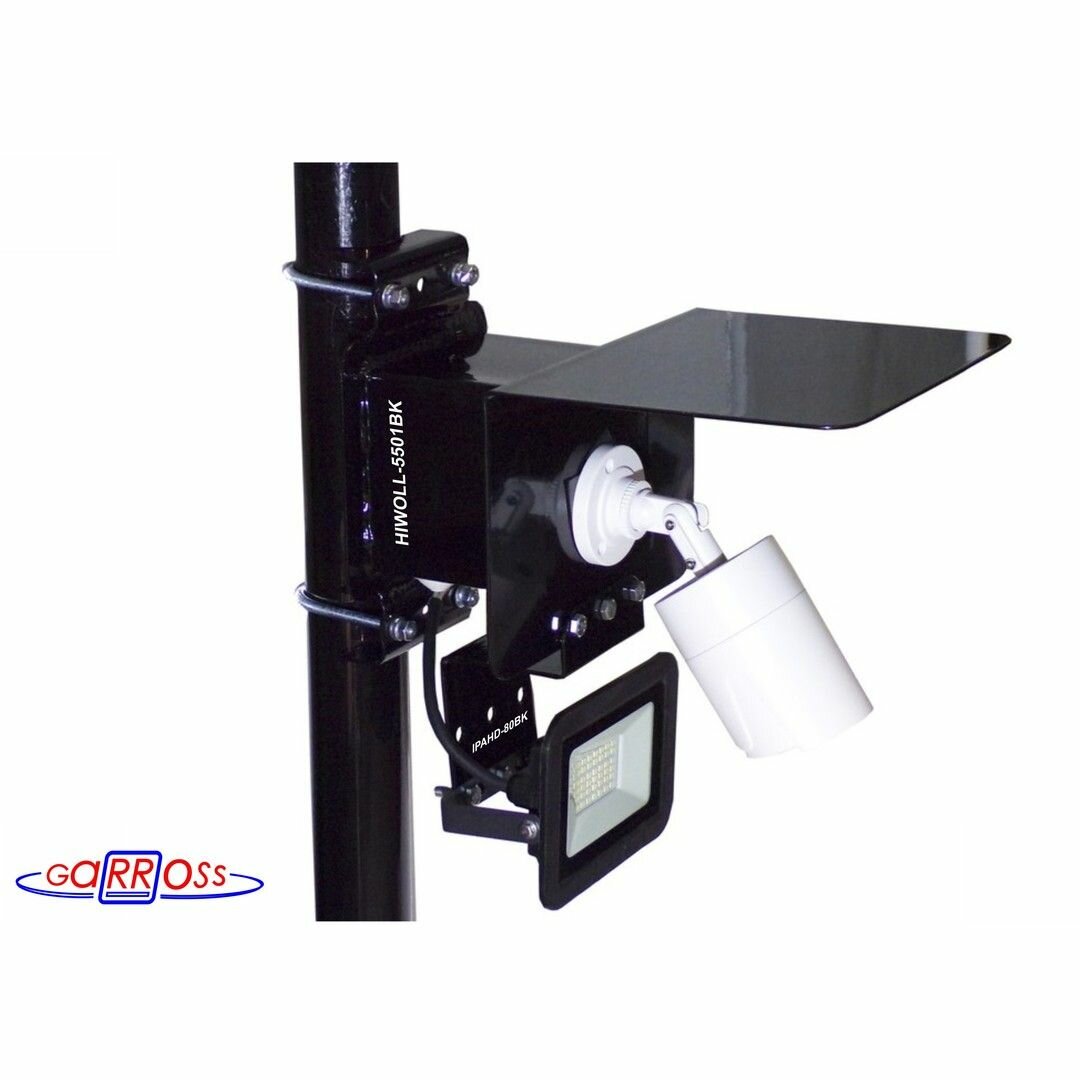 Кронштейн с козырьком для видеокамеры на мачту или кронштейн "HIWOLL-5501BK-195040" прочная сталь 2мм, цвет черный интересное:
