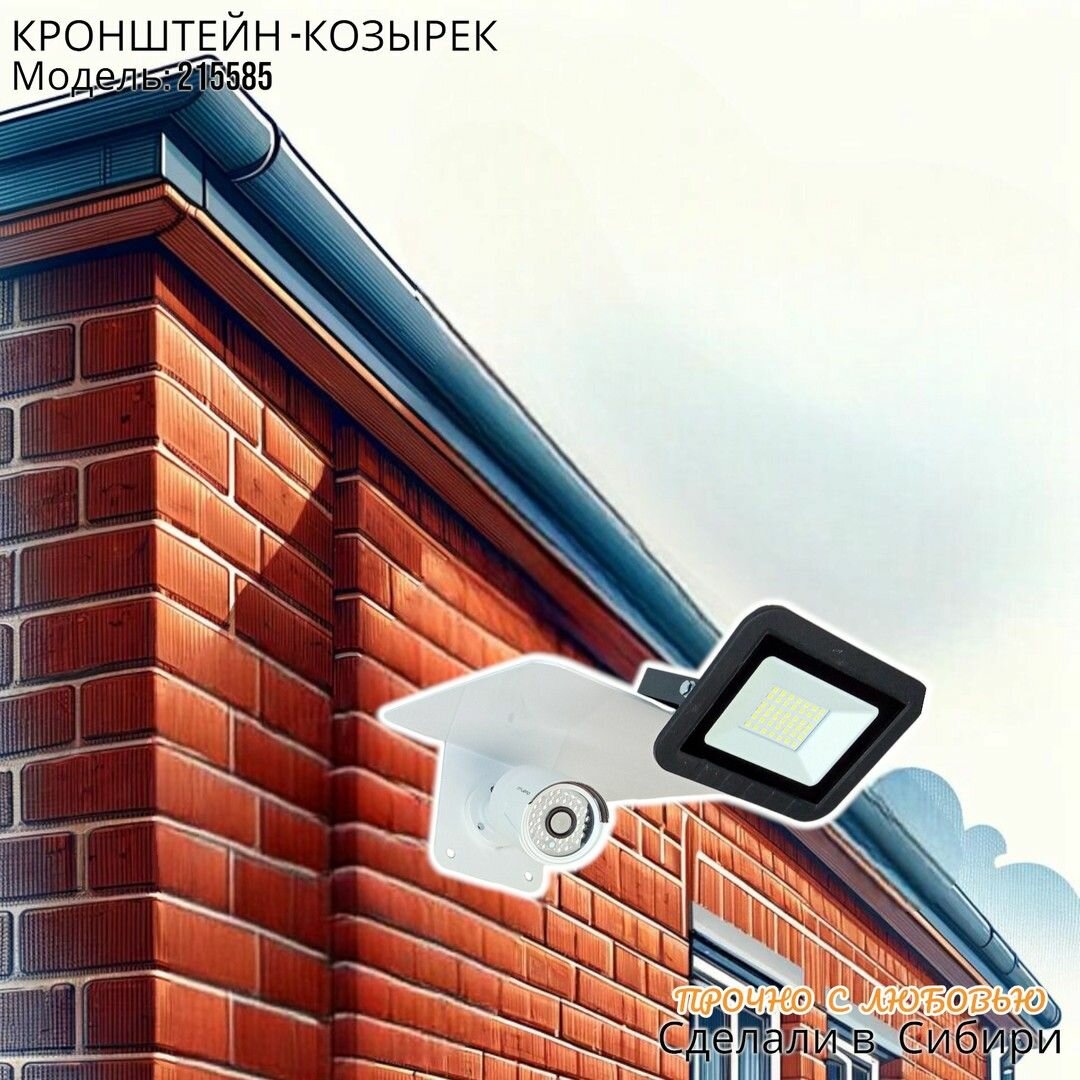 Кронштейн-козырёк для камеры с креплением прожектора MAIMA-215585 прочная сталь 2 мм, цвет белый, защитит от дождя, снега и солнца интересное: