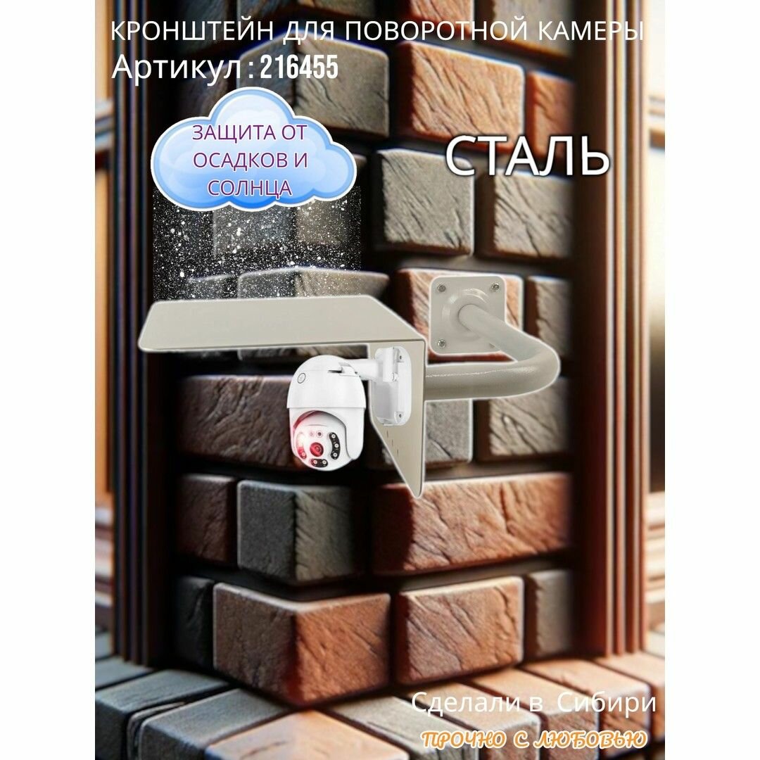 Кронштейн на угол дома для камеры и прожектора с козырьком HIWOLL-216454 вылет 35 см, прочная сталь