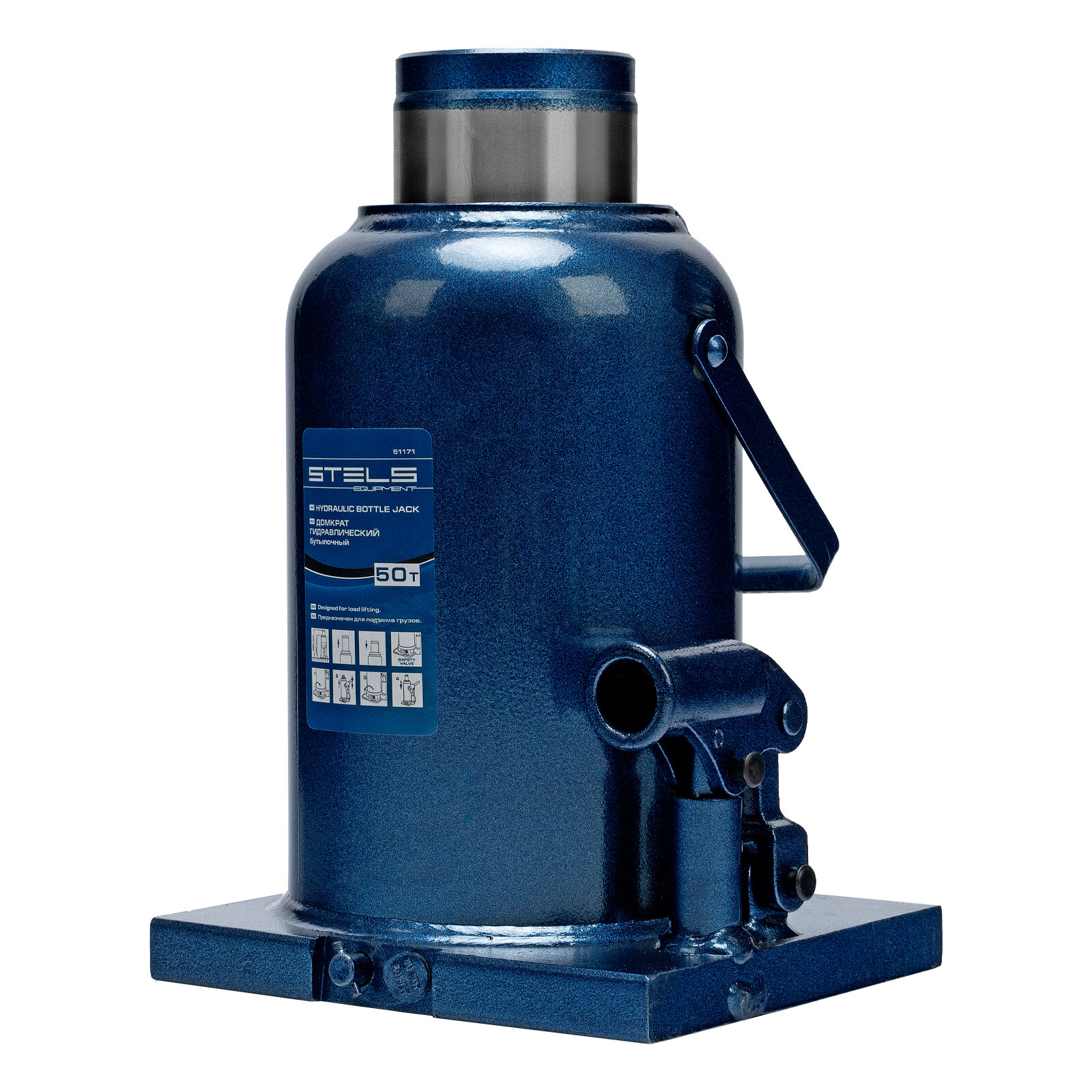 Домкрат бутылочный гидравлический Stels 51171 (50 т) синий
