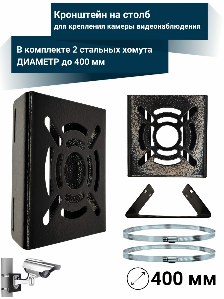 Кронштейн на столб 285х145 мм для крепления камеры видеонаблюдения со стальными хомутами диаметр 400 мм