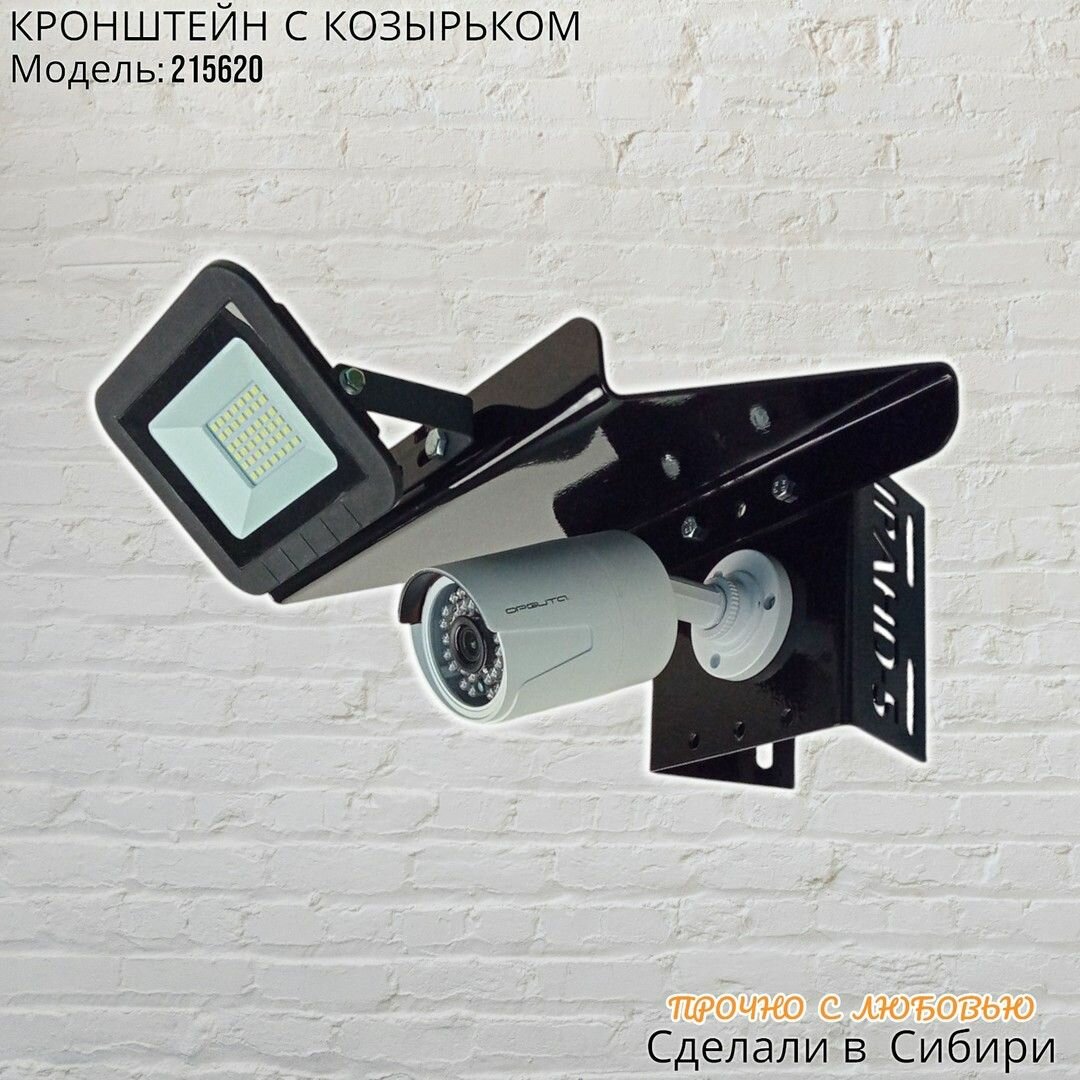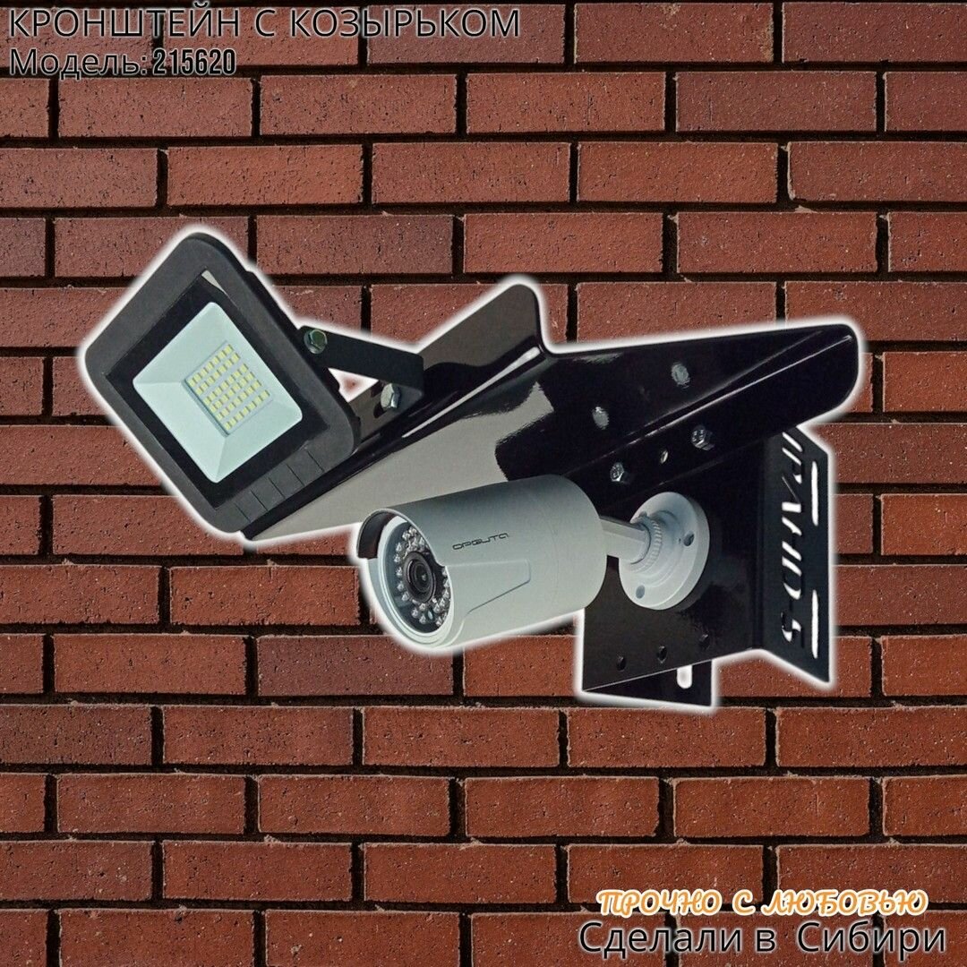 Кронштейн для камеры видеонаблюдения и прожектора с козырьком на столб MAIMA-215620 черный, прочная сталь интересное: