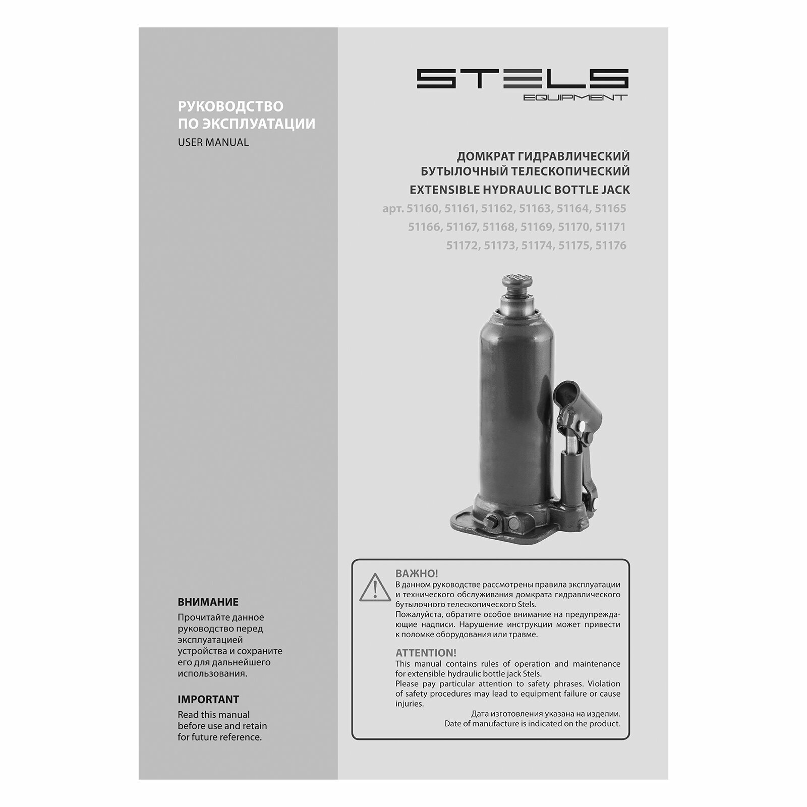 Домкрат гидравлический бутылочный STELS EQUIPMENT STELS 51167, 12 т, h подъема 227–457 мм
