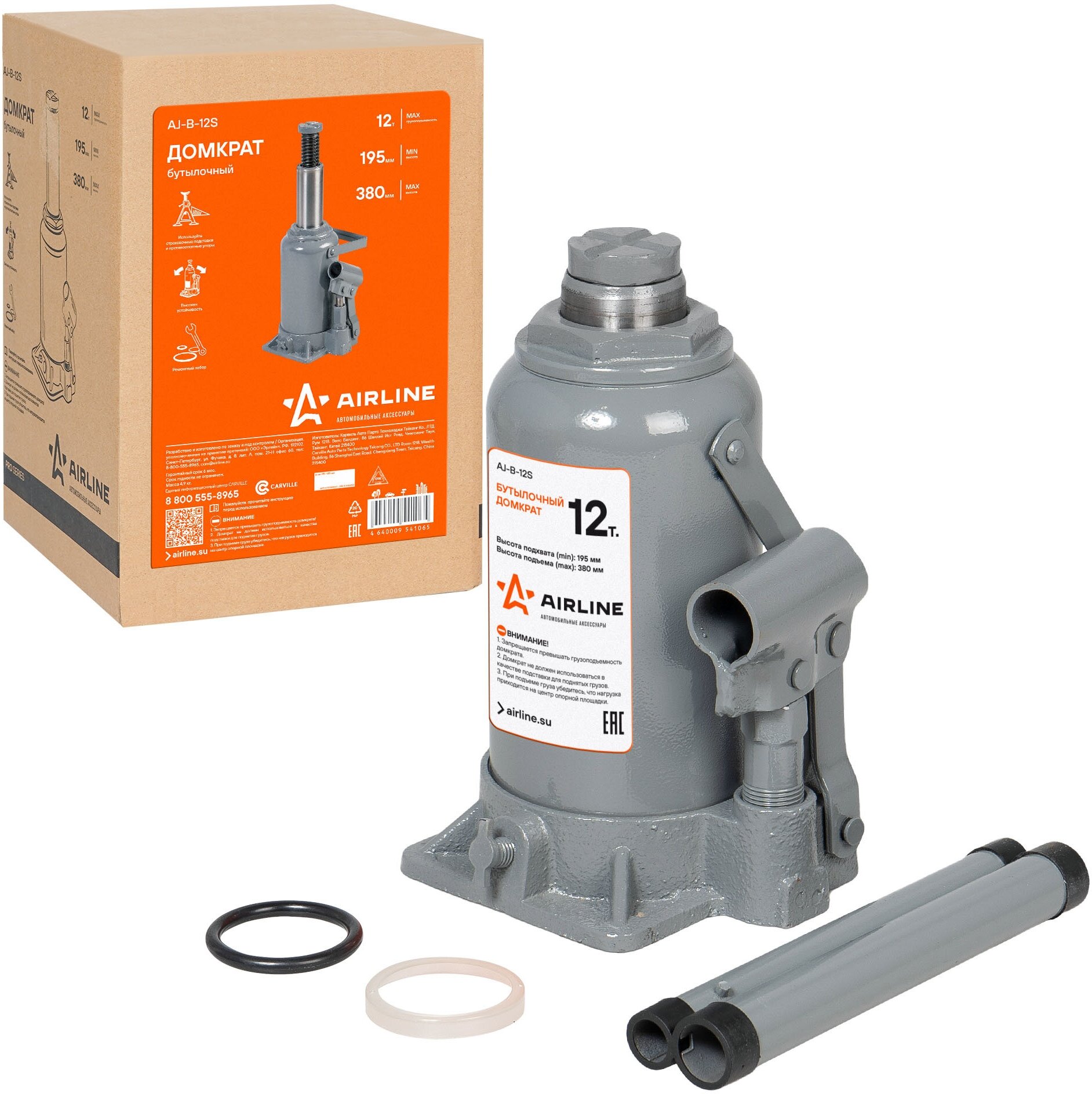 Домкрат бутылочный 12т (MIN - 195 мм, MAX - 380 мм) AJ-B-12S AIRLINE
