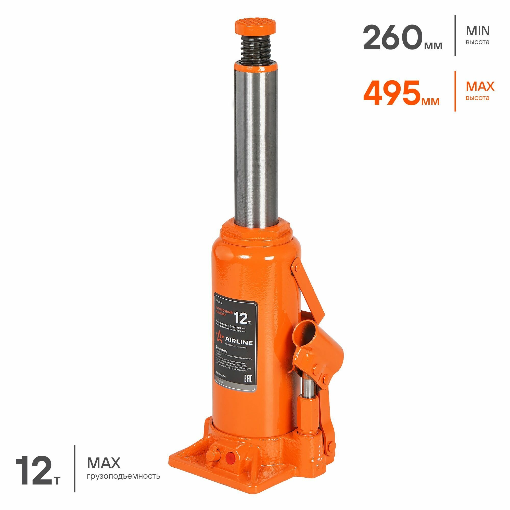AIRLINE aj-b-12 (AJB12) домкрат бутылочный 12т pro (min - 260 мм max - 495 мм) (aj-b-12)