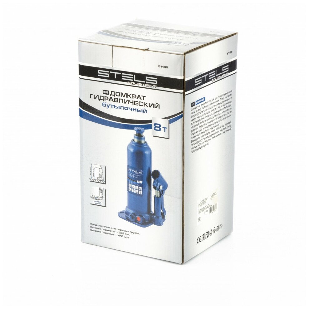 Домкрат гидравлический бутылочный, 8 т, h подъема 222-447 мм Stels, арт. 51165