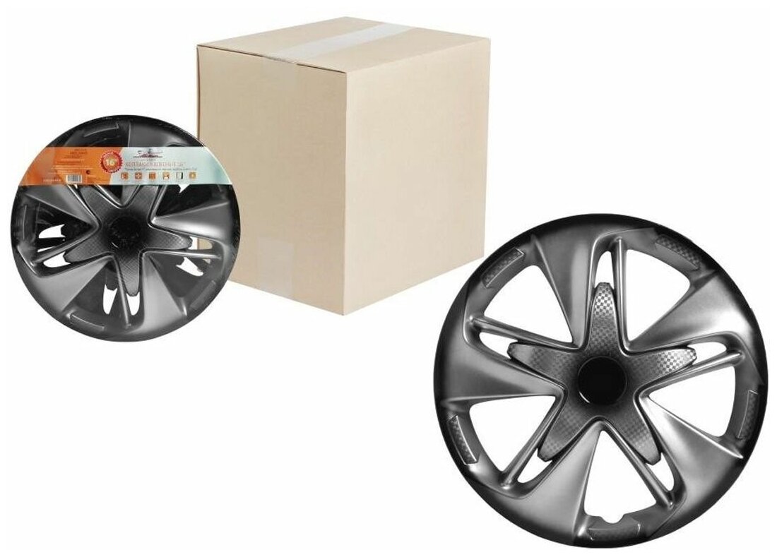 Колпаки колесные 16 Супер Астра + , серебристо-черный, карбон, компл. 2 шт.