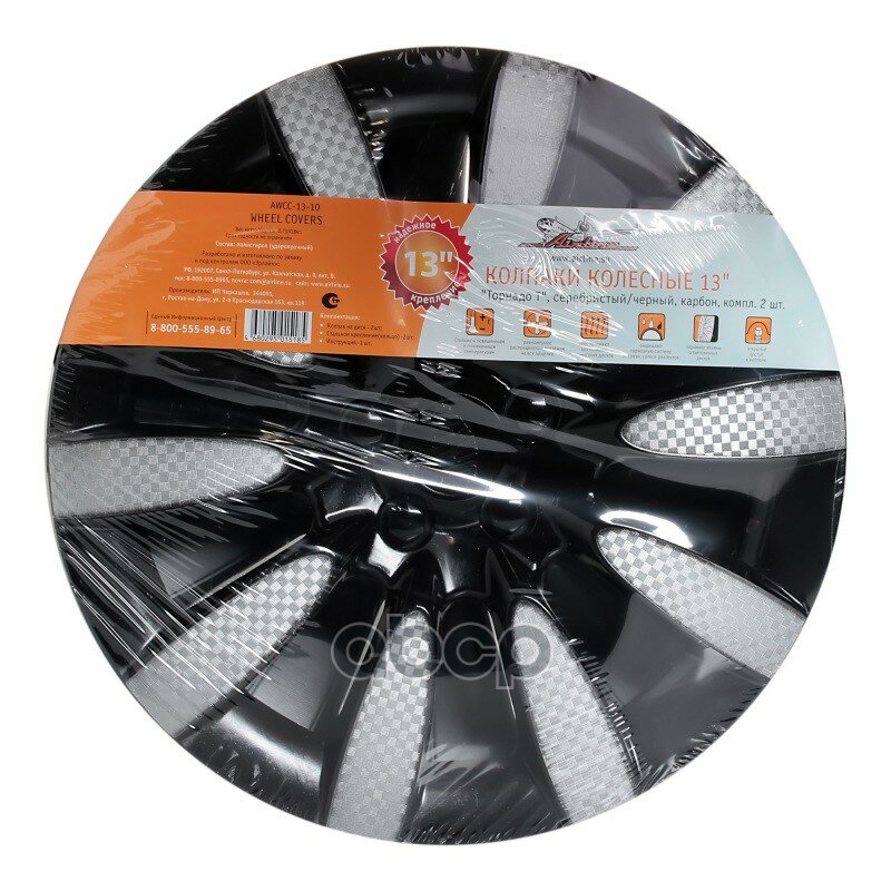 Колпаки колесные 13" "Торнадо Т", серебристый/черный, карбон, компл. 2 шт. (AWCC-13-10)