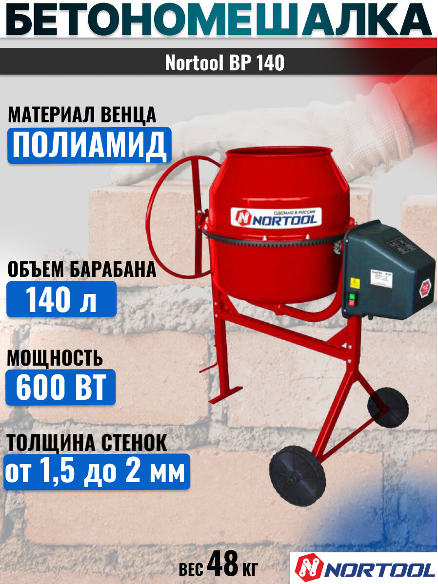 Купить Бетономешалка NORTOOL BP140, гравитационная, полиамидный венец