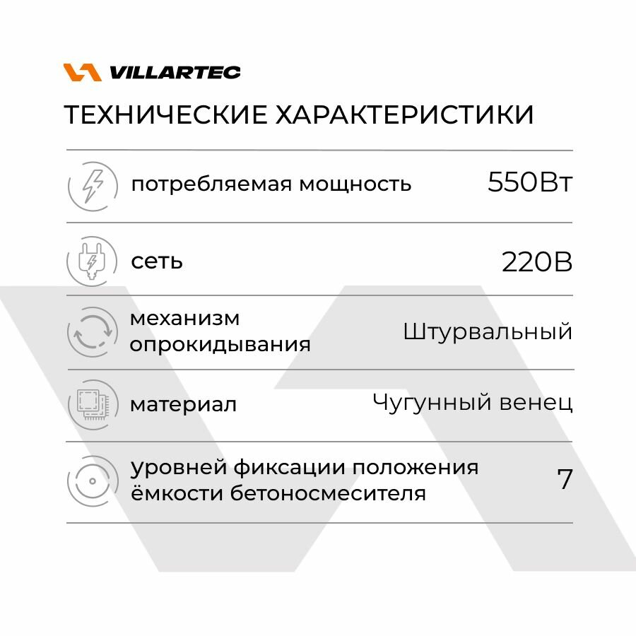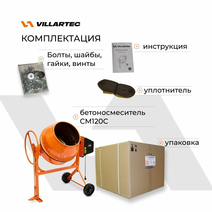 Бетономешалка строительная 120 л VILLARTEC СМ-120С (чугунный венец) интересное: